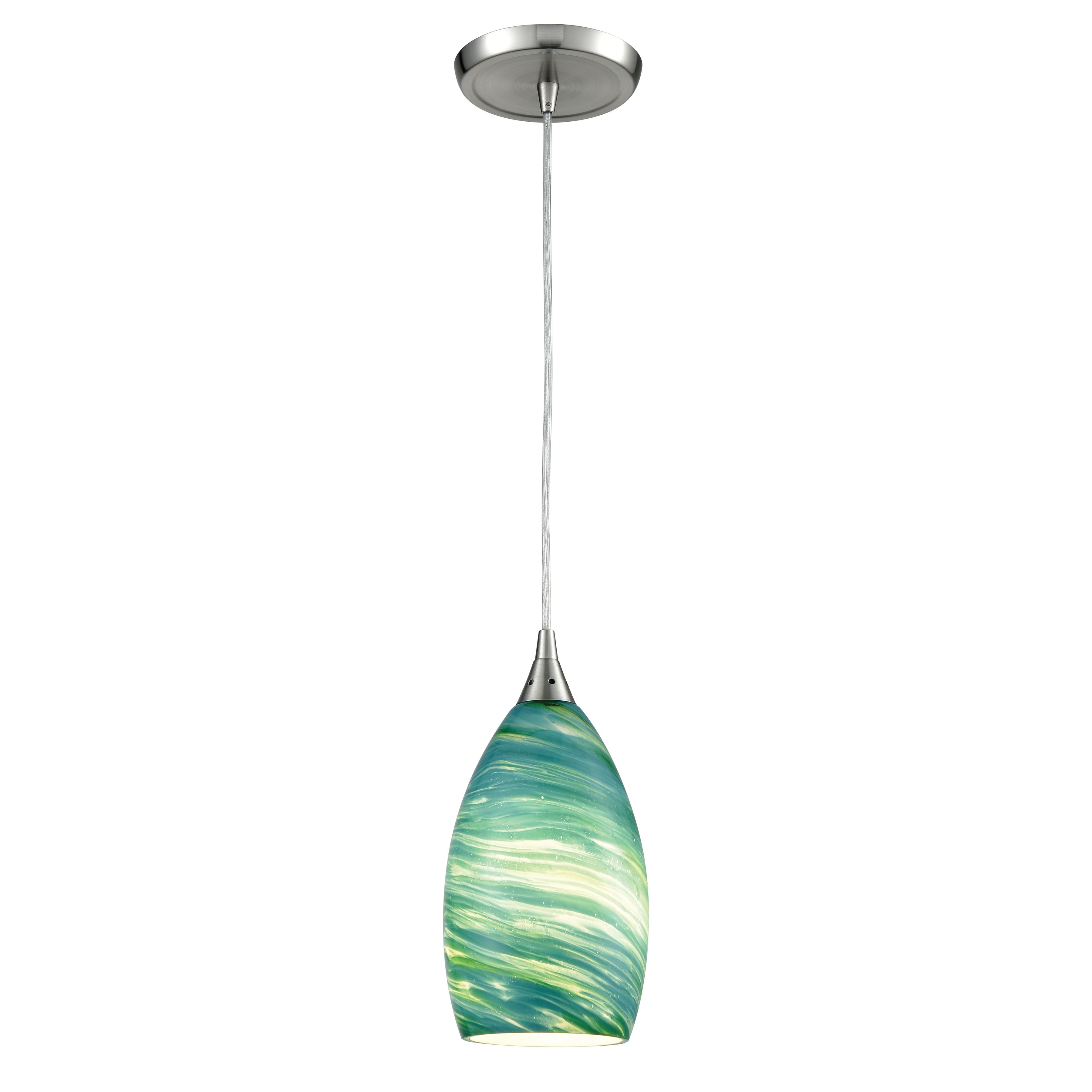 Collanino 5'' Wide 1-Light Pendant - Satin Nickel with Aqua Swirl Glass