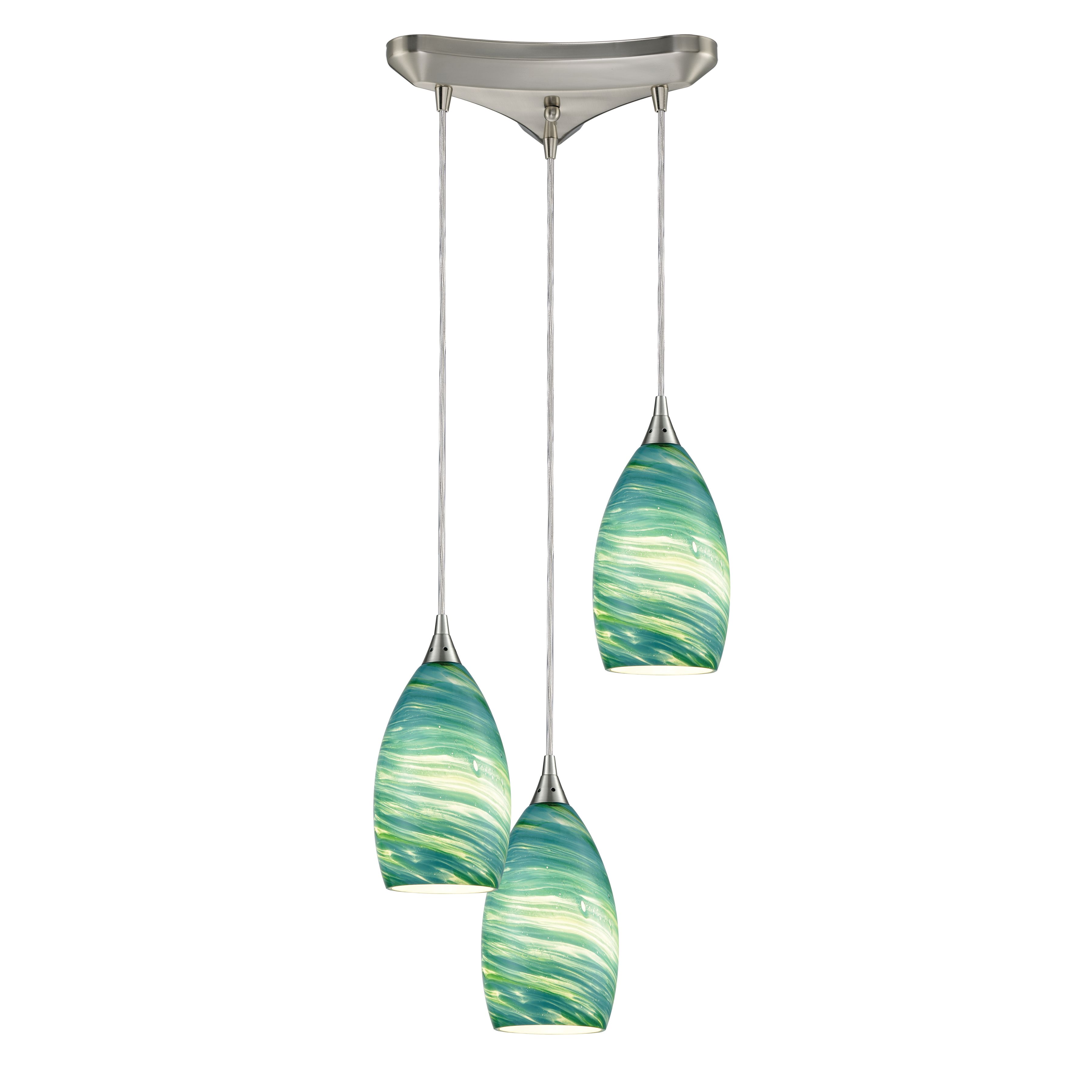 Collanino 12'' Wide 3-Light Pendant - Satin Nickel with Aqua Swirl Glass