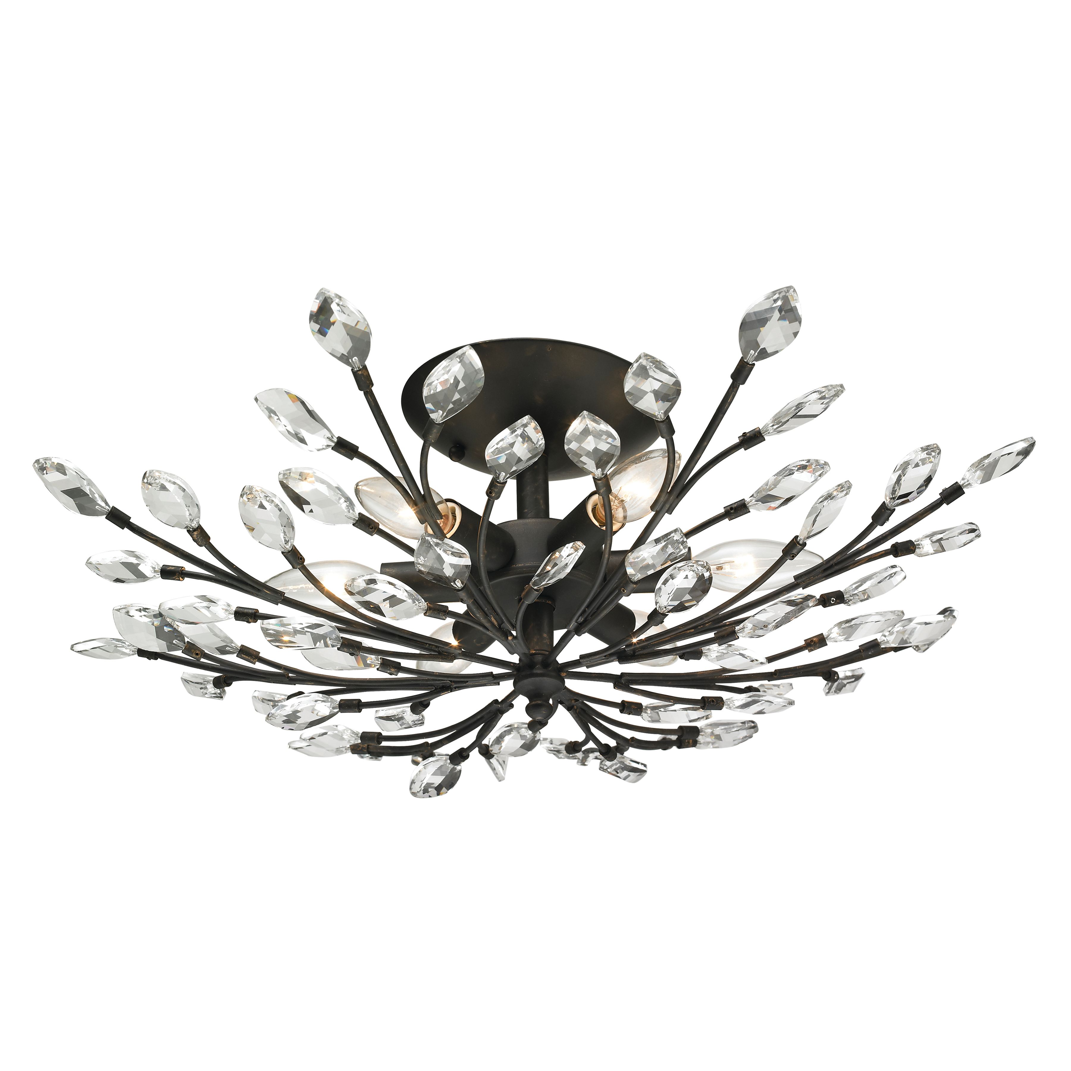 Crystal Branches 24'' Wide 6-Light Semi Flush Mount - Burnt Bronze