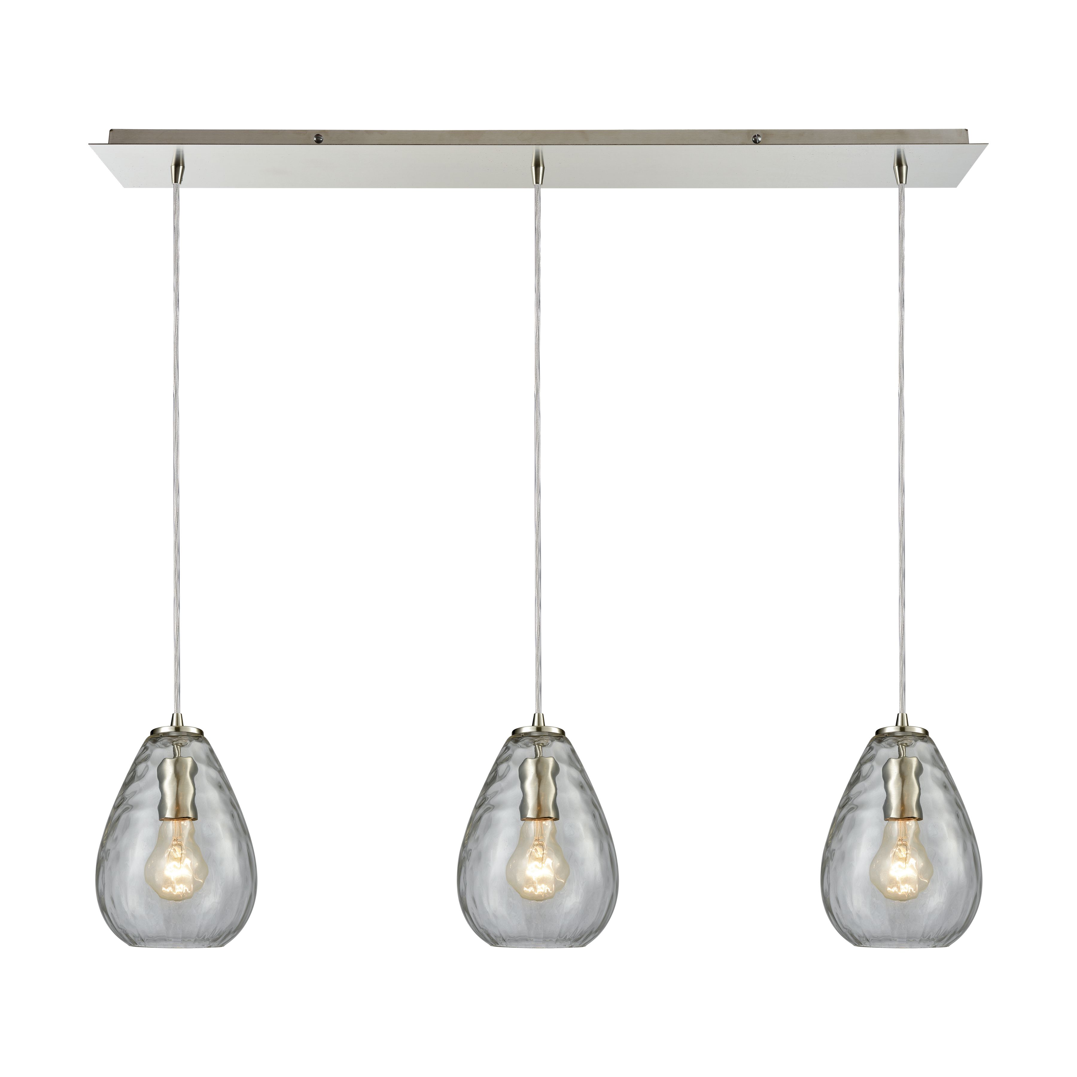 Lagoon 10'' Wide 3-Light Pendant - Satin Nickel with Clear