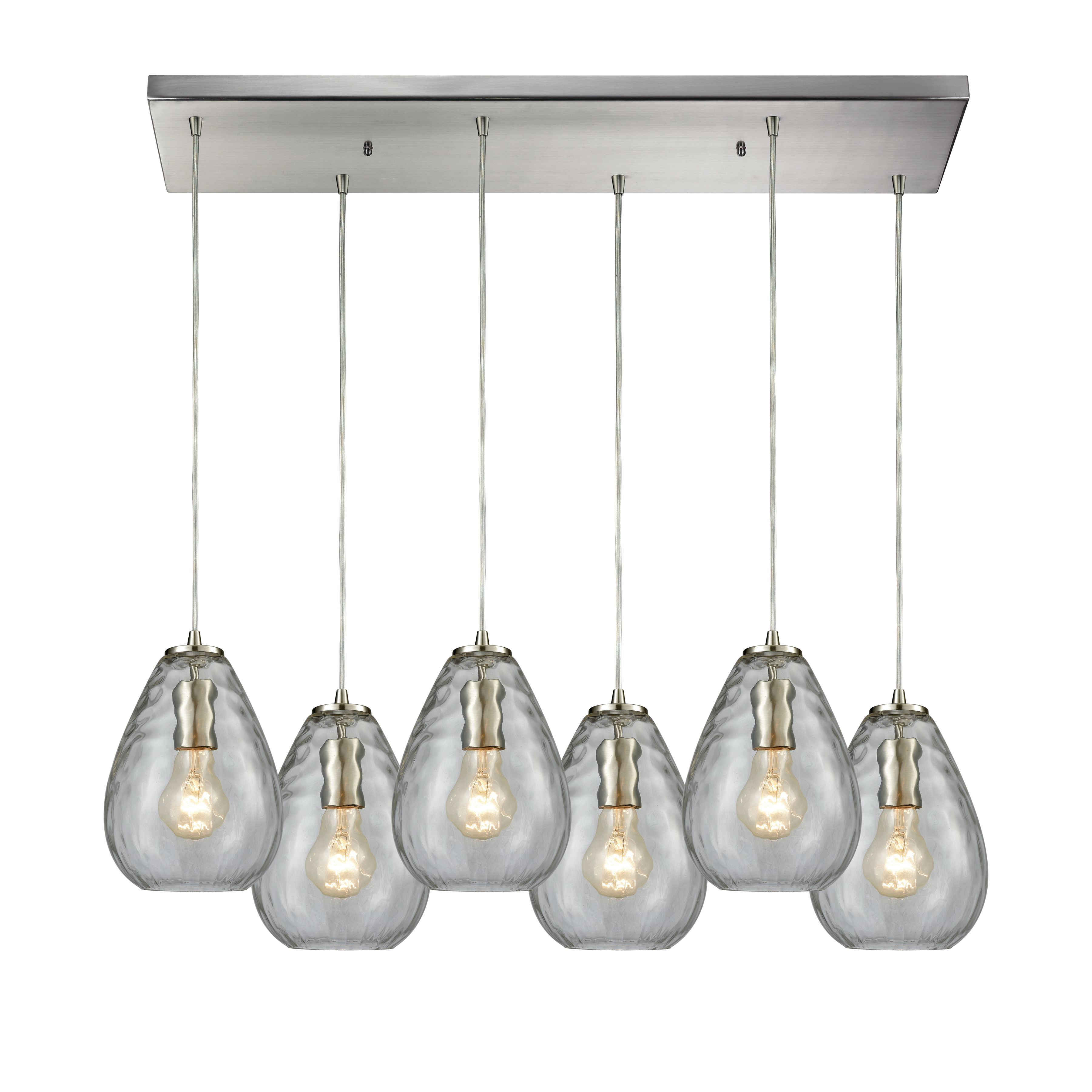 Lagoon 30'' Wide 6-Light Rectangular Pendant - Satin Nickel with Clear