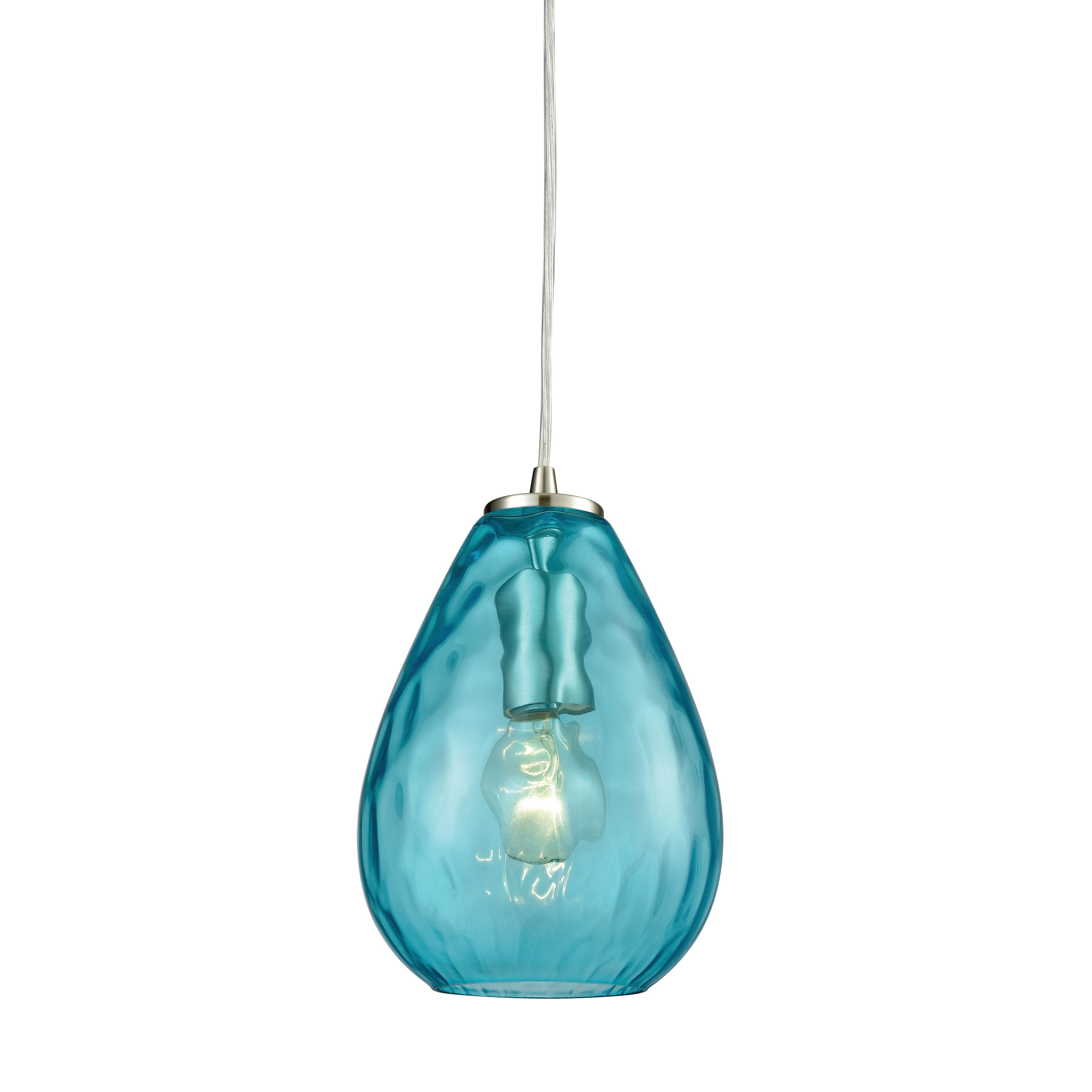 Lagoon 6'' Wide 1-Light Pendant - Satin Nickel with Aqua