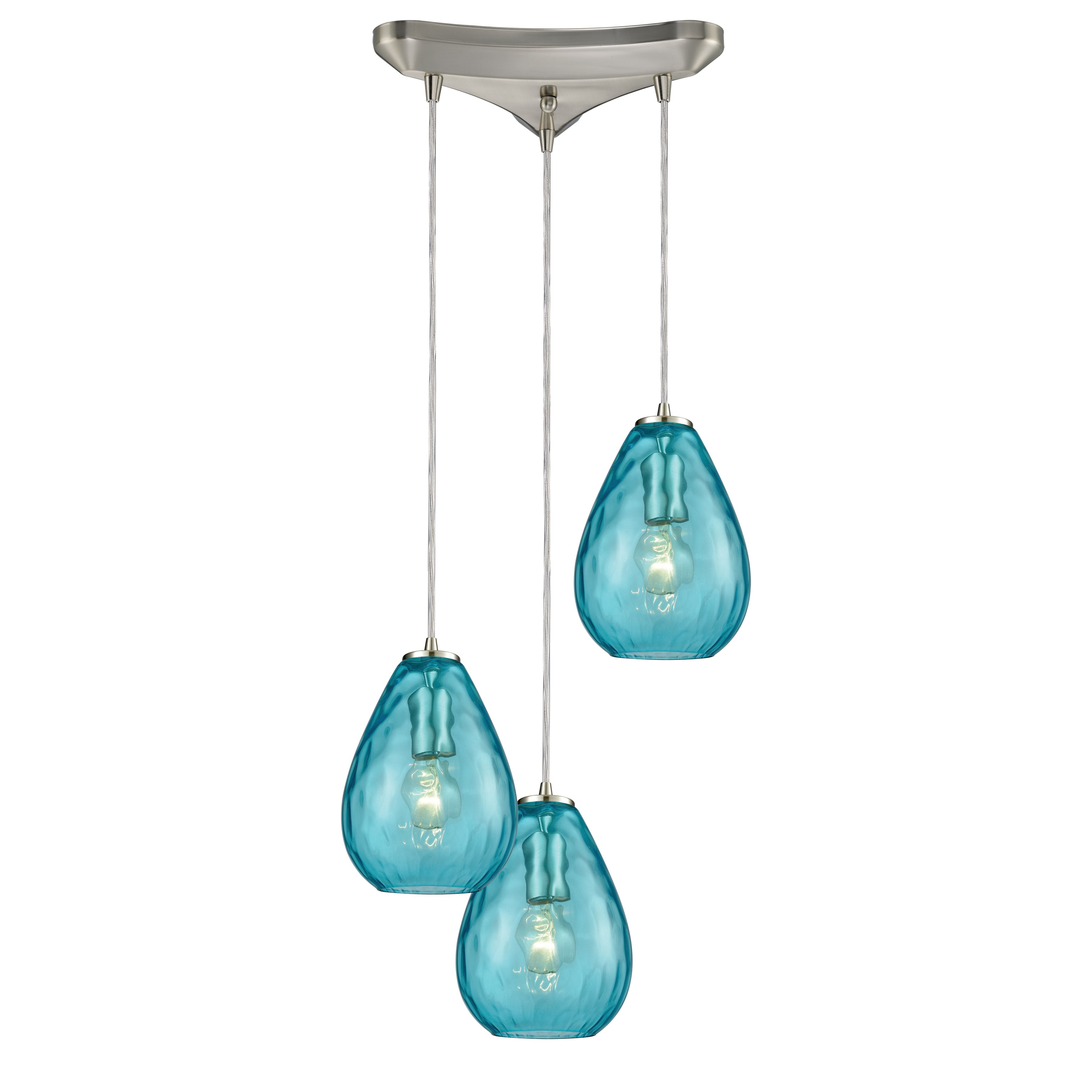 Lagoon 10'' Wide 3-Light Pendant - Satin Nickel with Aqua