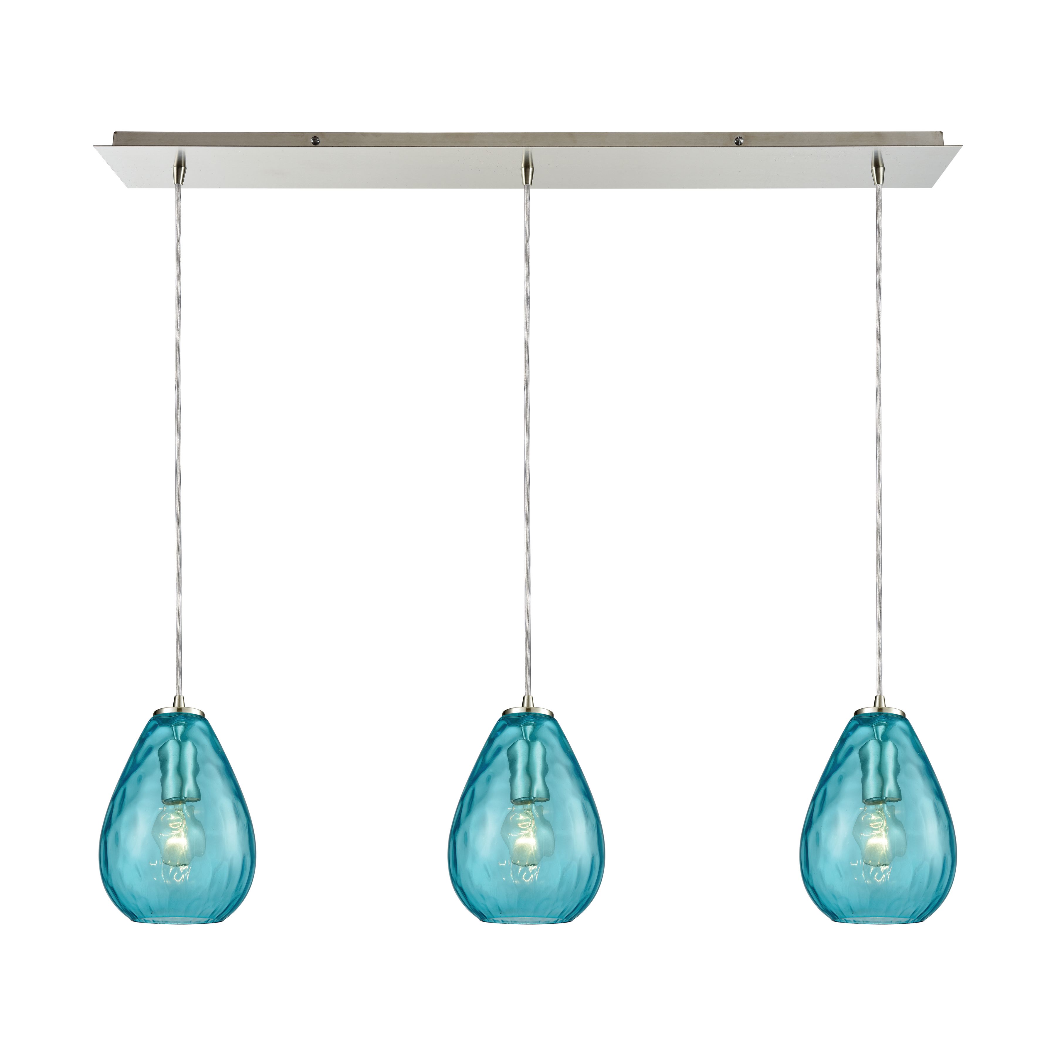 Lagoon 36'' Wide 3-Light Linear Pendant - Satin Nickel with Aqua