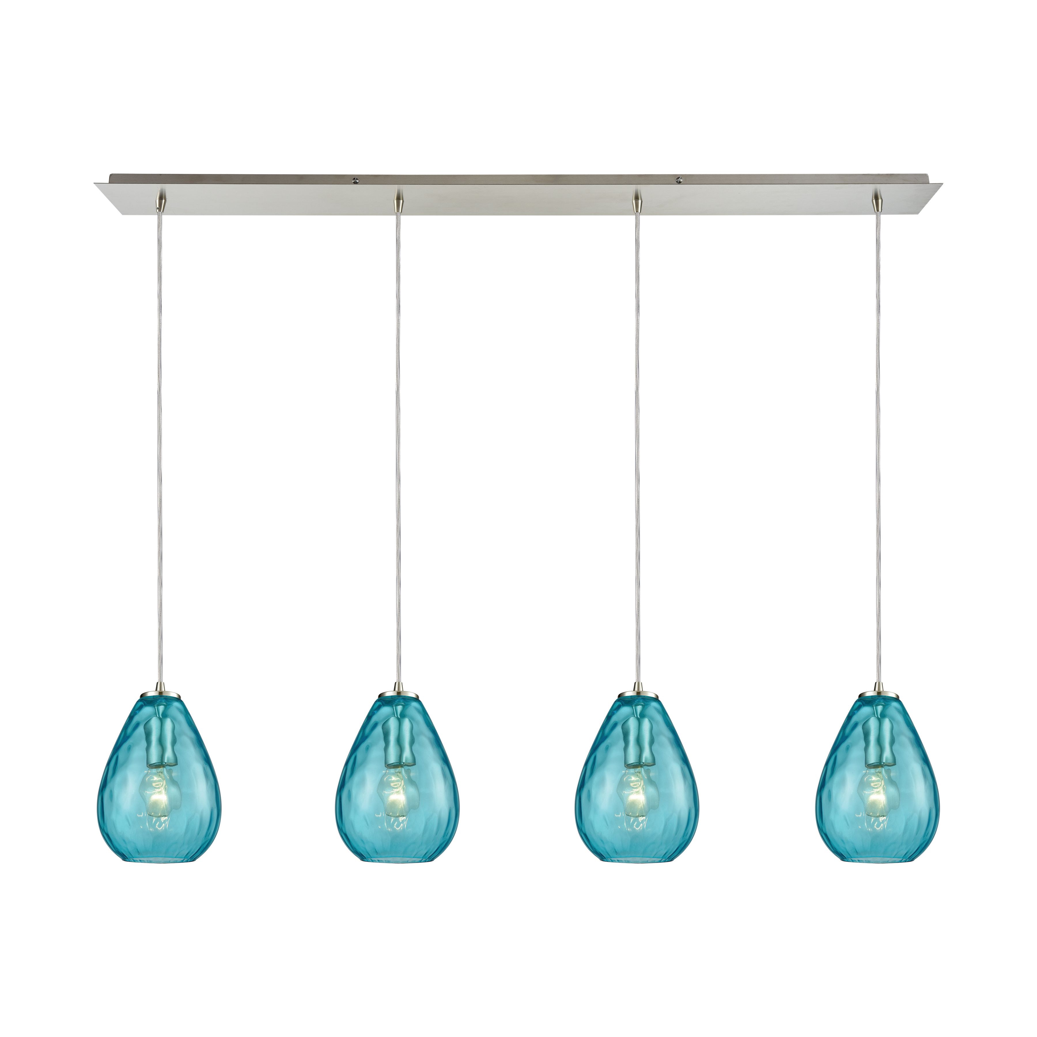 Lagoon 46'' Wide 4-Light Linear Pendant - Satin Nickel with Aqua