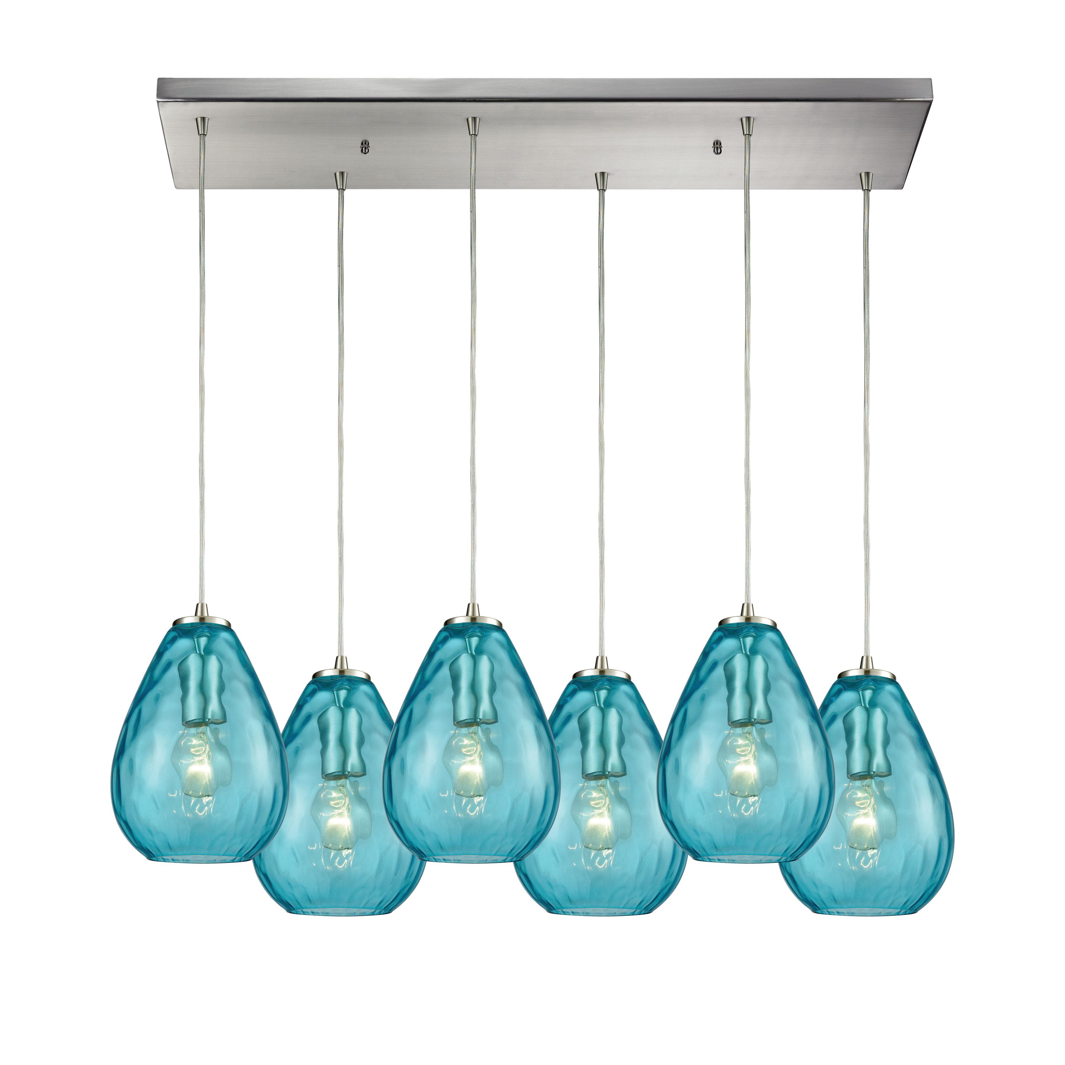 Lagoon 30'' Wide 6-Light Rectangular Pendant - Satin Nickel with Aqua