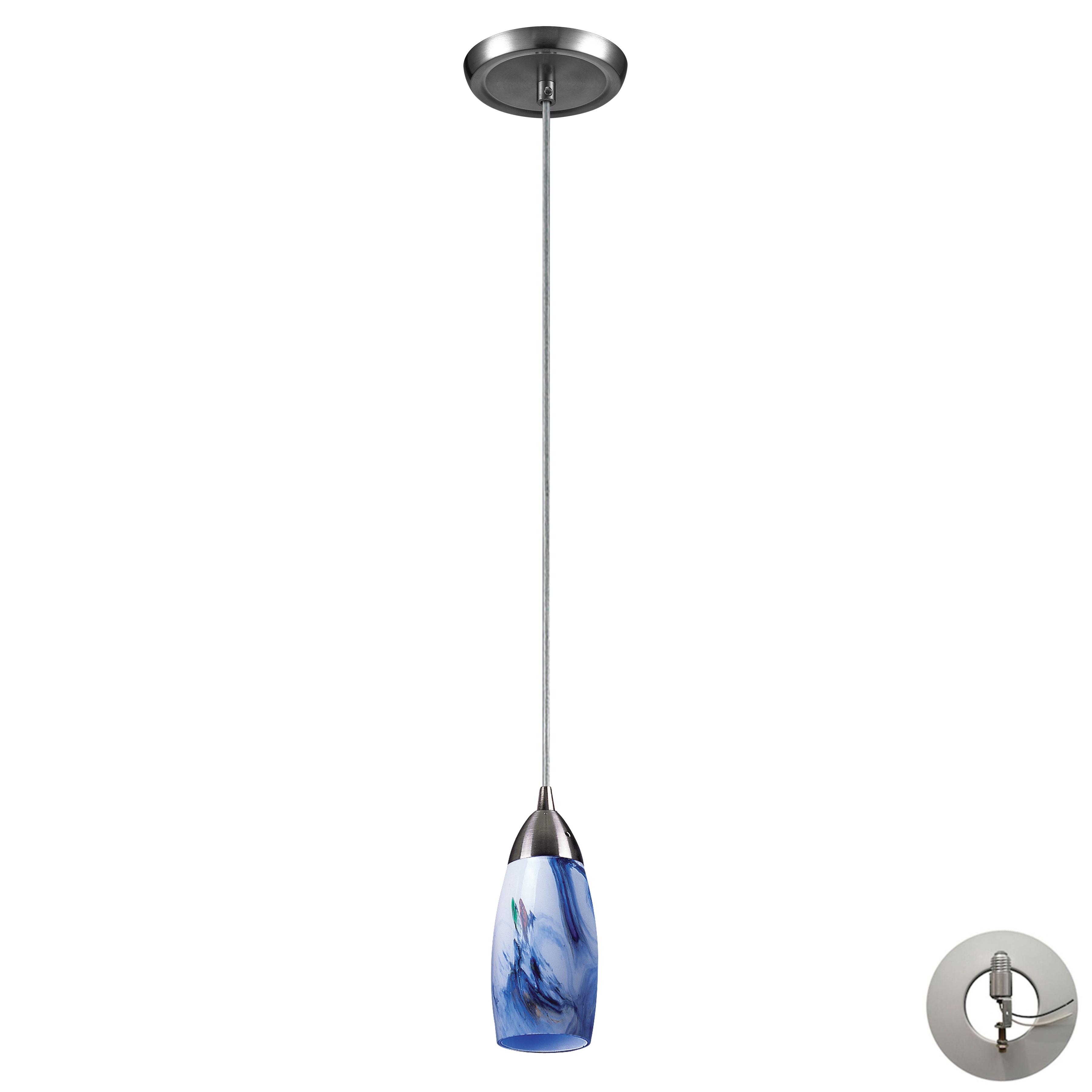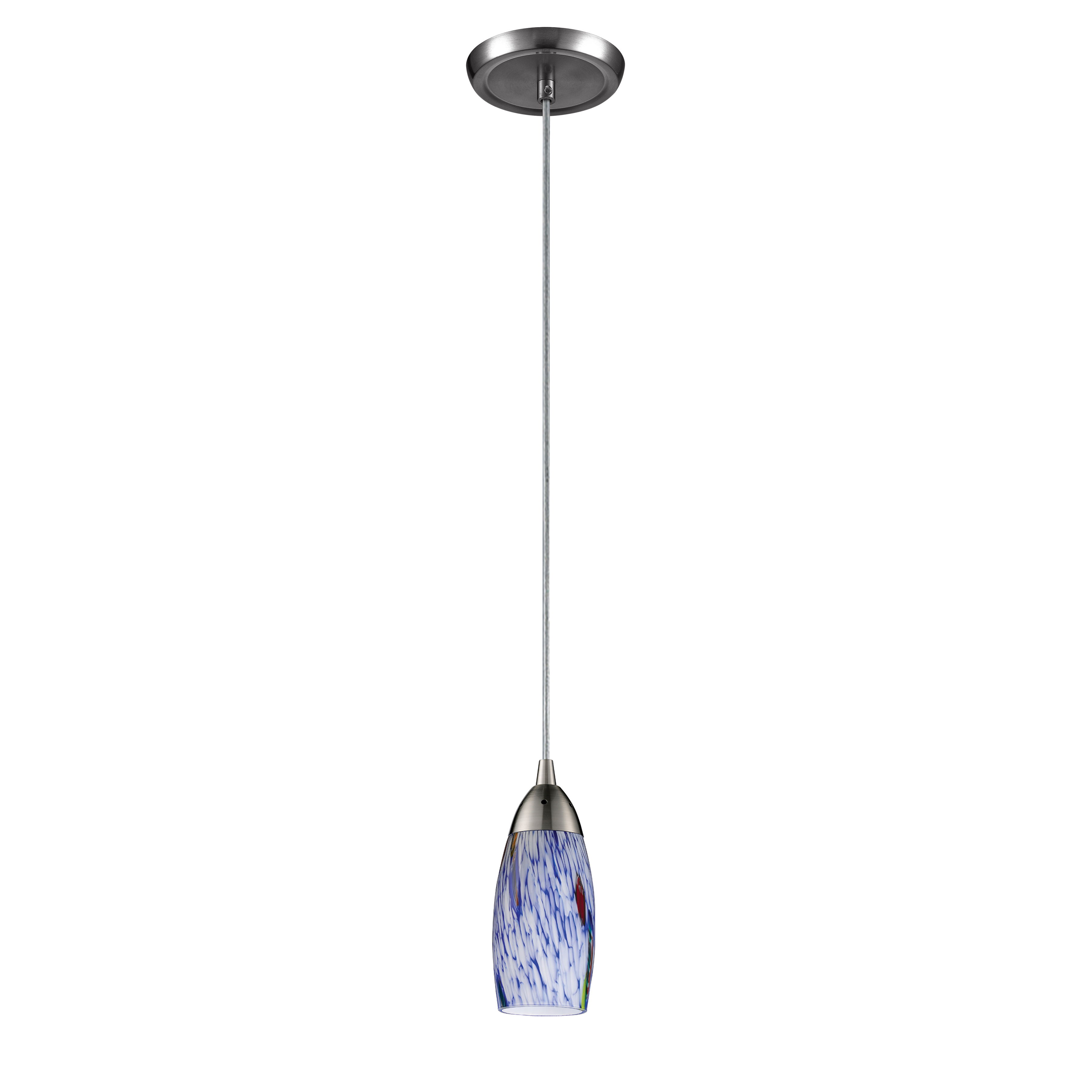 Milan 3'' Wide 1-Light Pendant - Satin Nickel with Starburst Blue Glass - Includes Adapter Kit