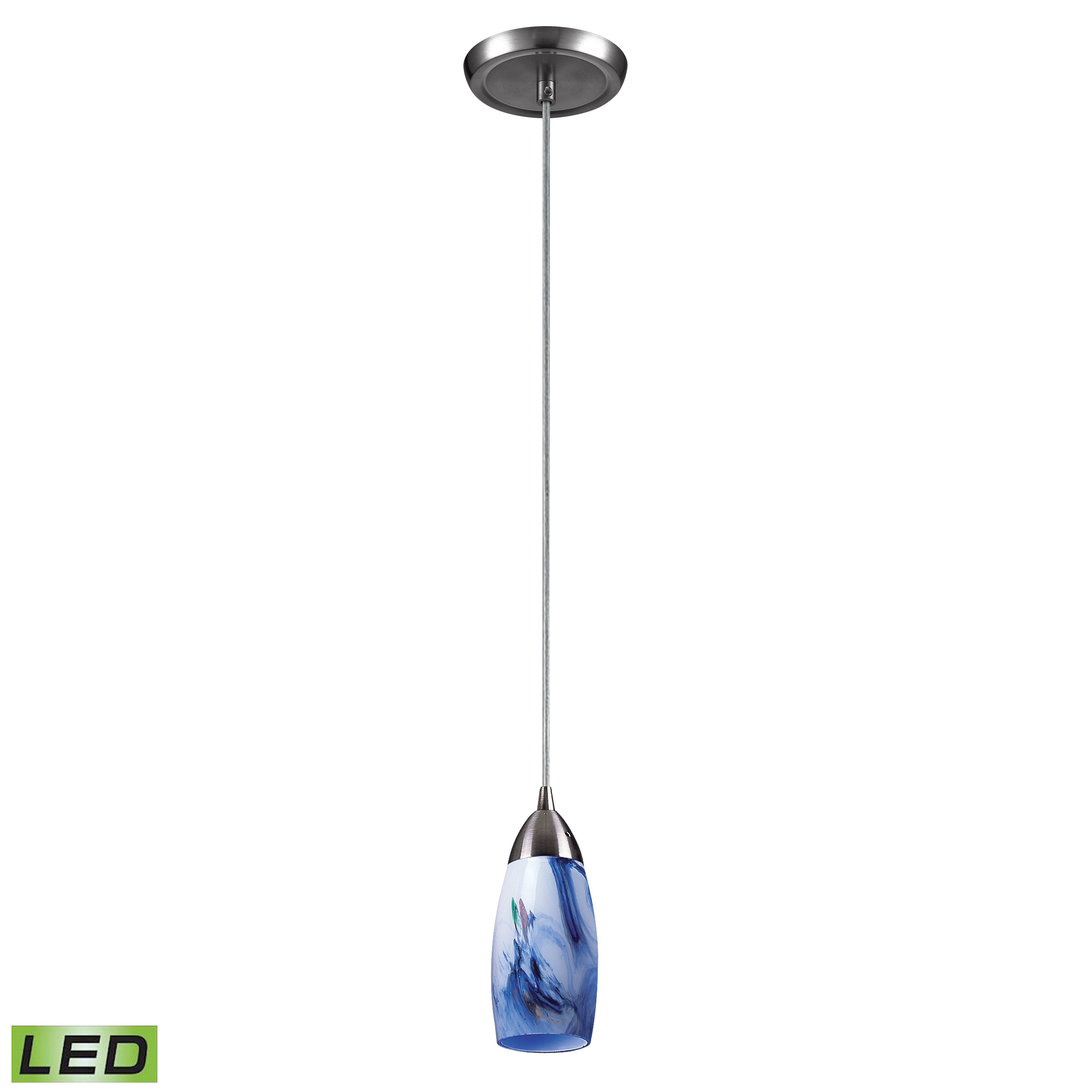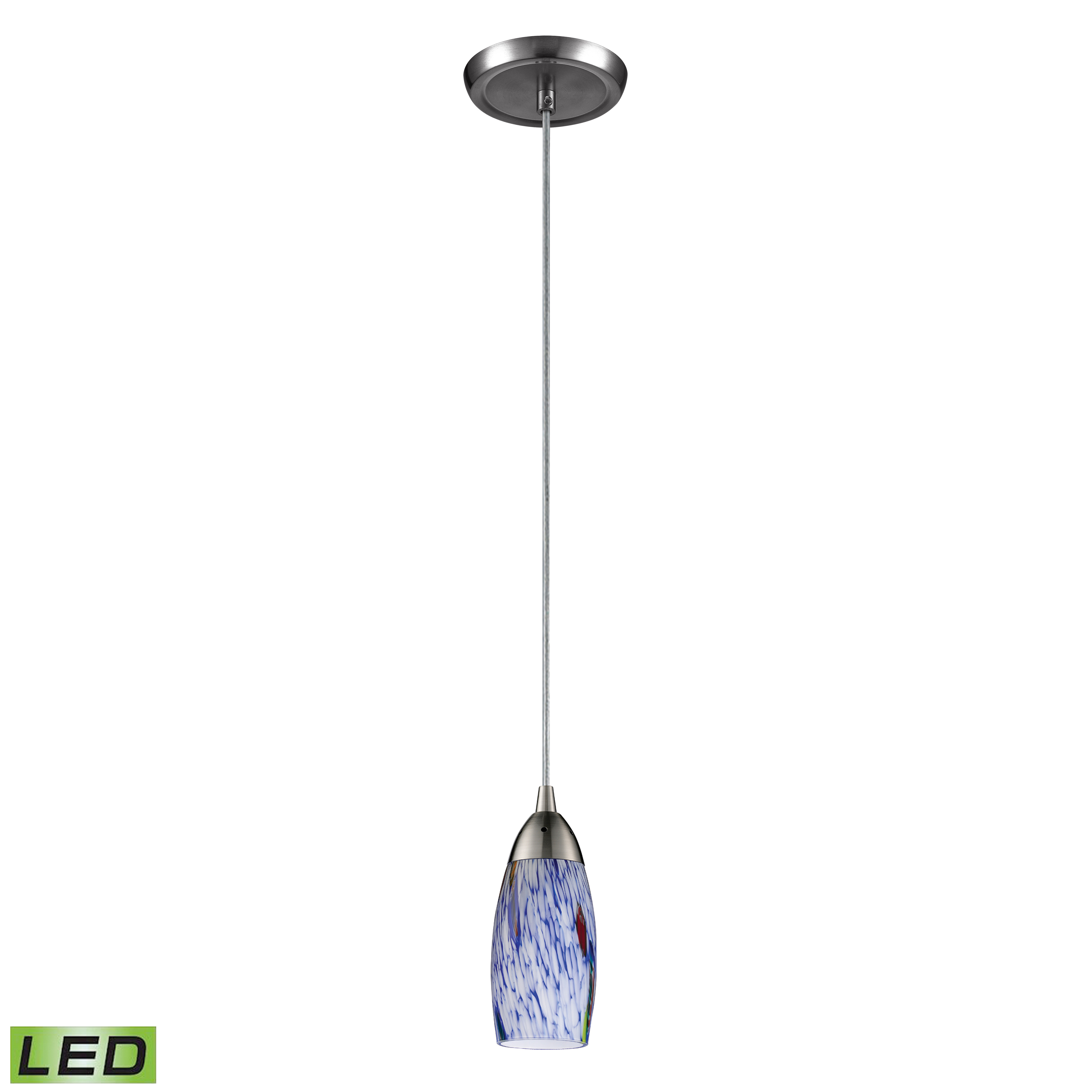 Milan 3'' Wide 1-Light Pendant - Satin Nickel with Starburst Blue Glass - Includes LED Bulb