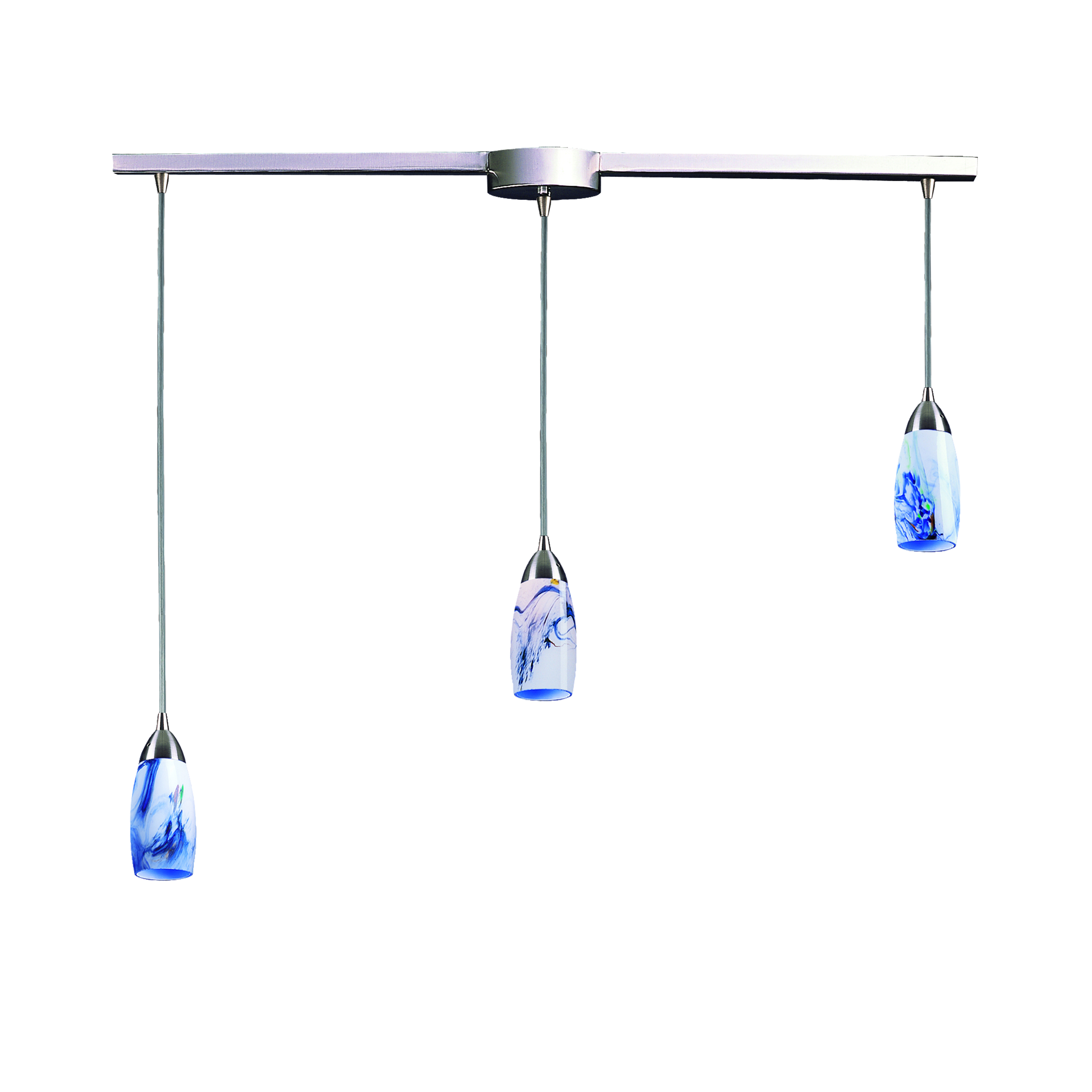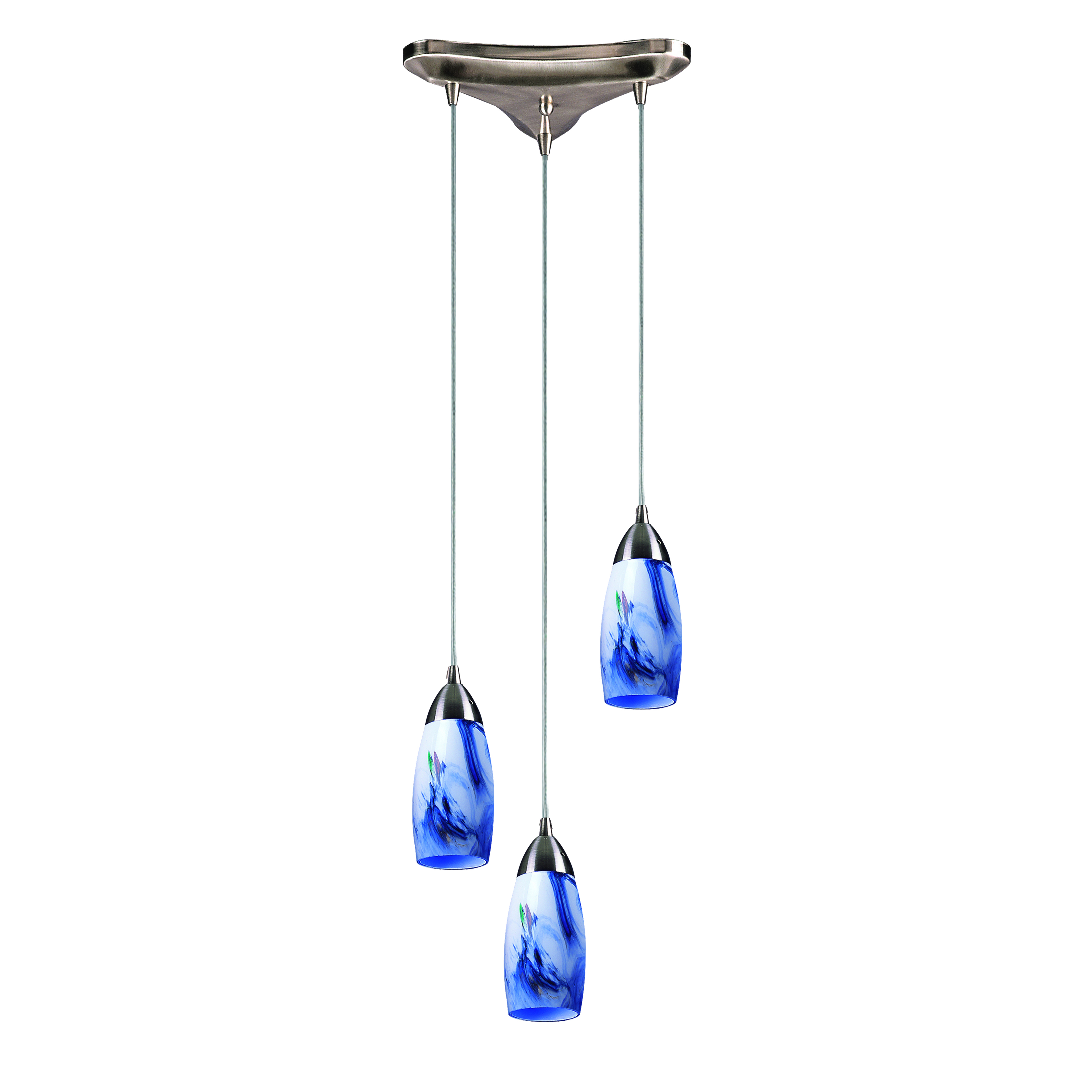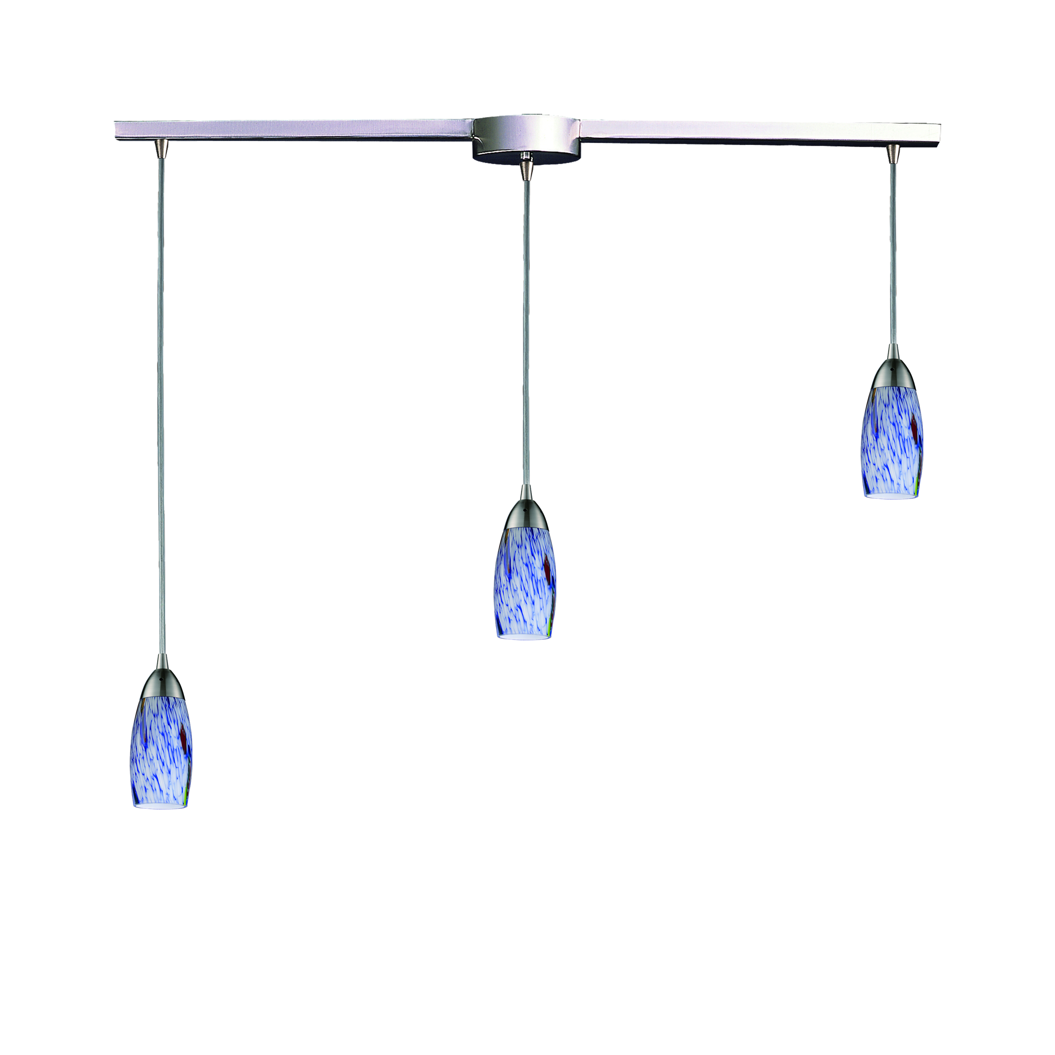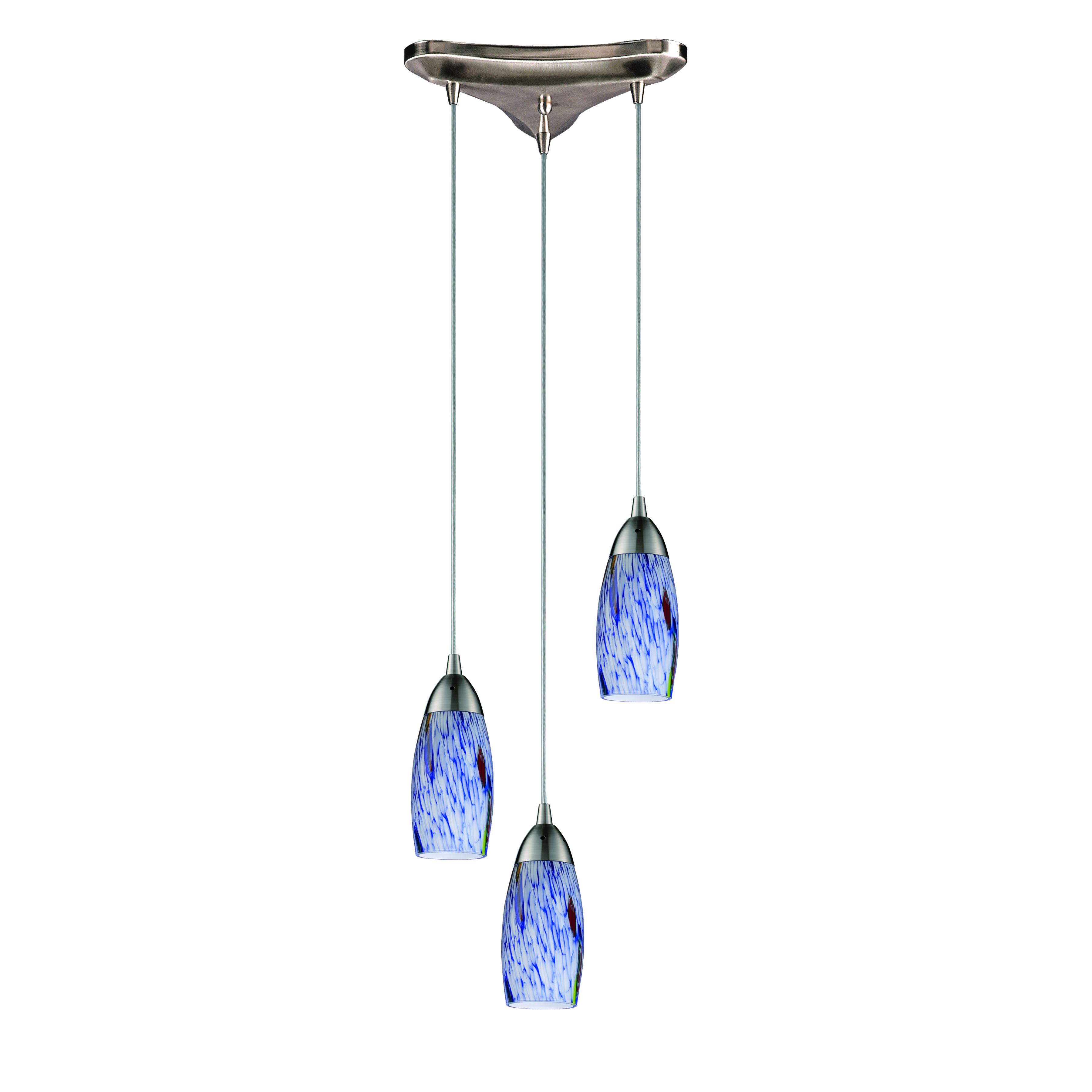 Milan 10'' Wide 3-Light Pendant - Satin Nickel with Starburst Blue Glass