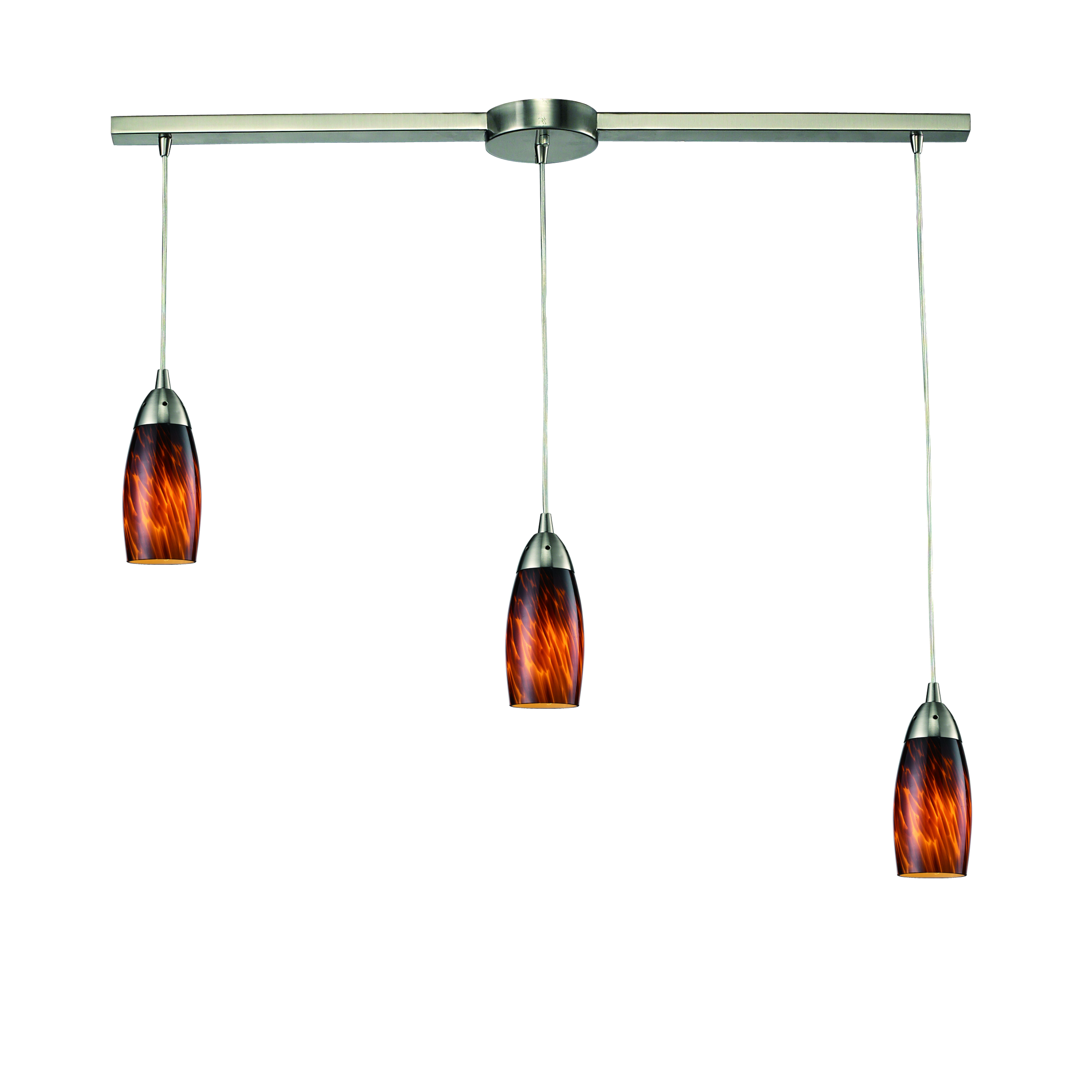 Milan 10'' Wide 3-Light Pendant - Satin Nickel with Espresso Glass