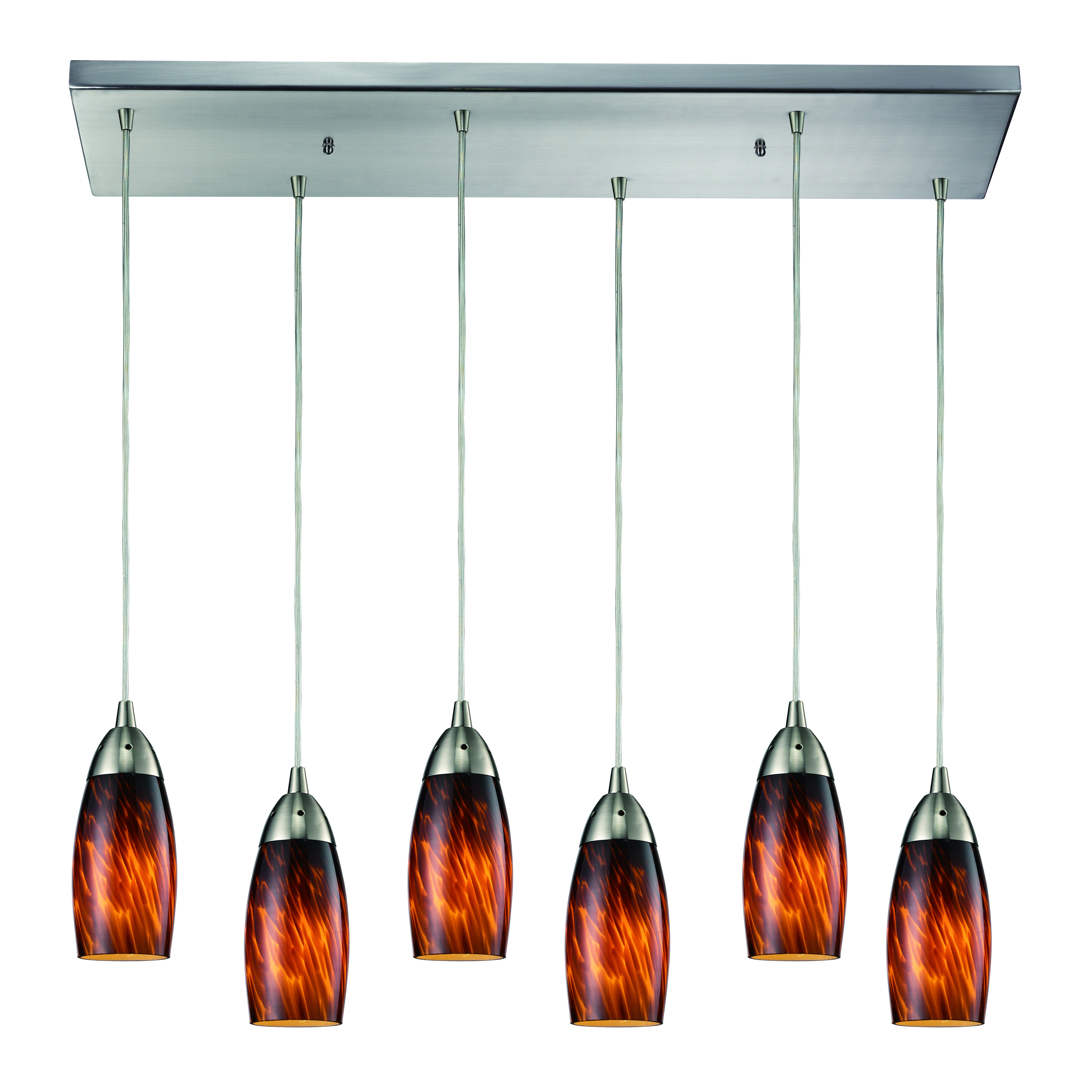 Milan 30'' Wide 6-Light Pendant - Satin Nickel with Espresso Glass