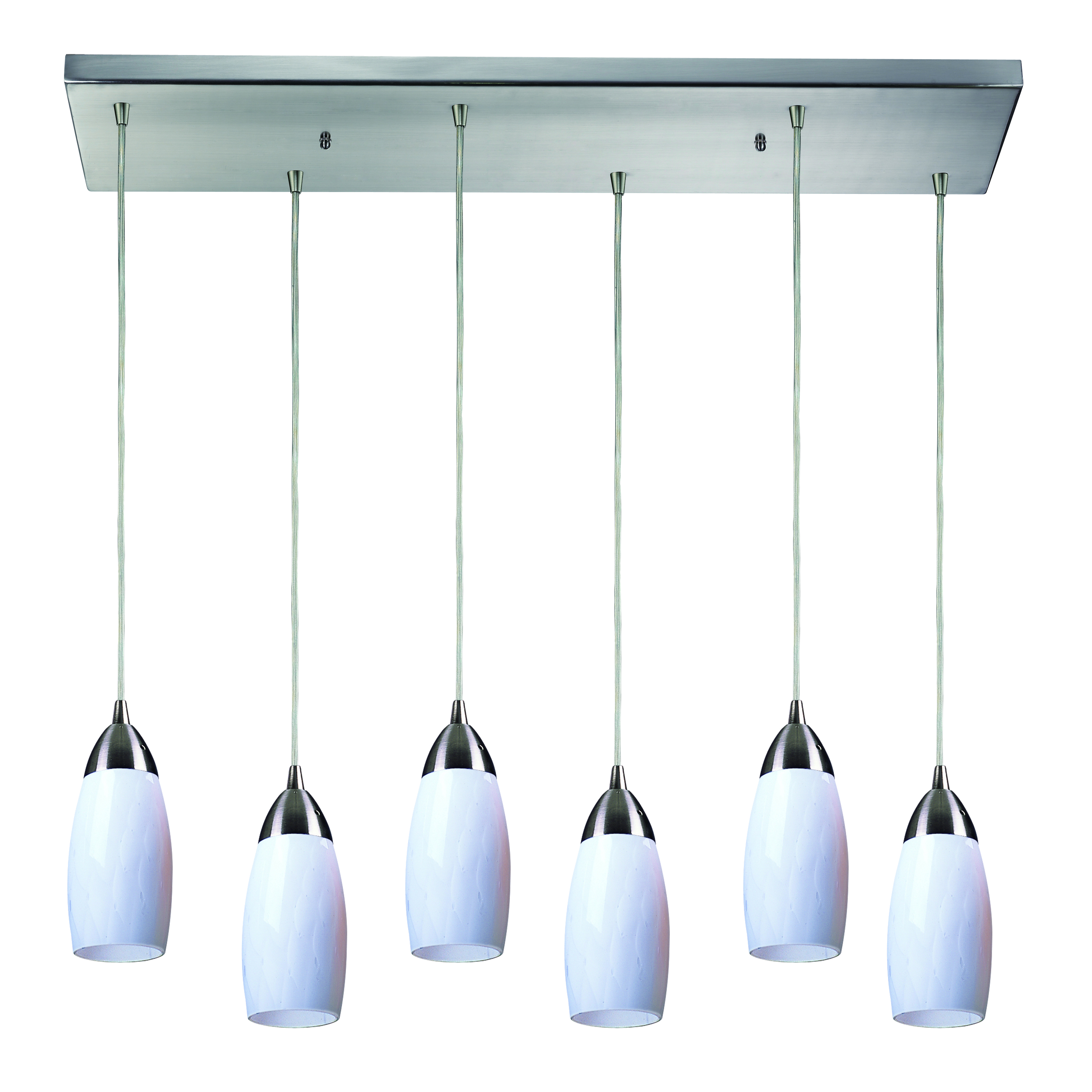 Milan 30'' Wide 6-Light Pendant - Satin Nickel with Snow White Glass