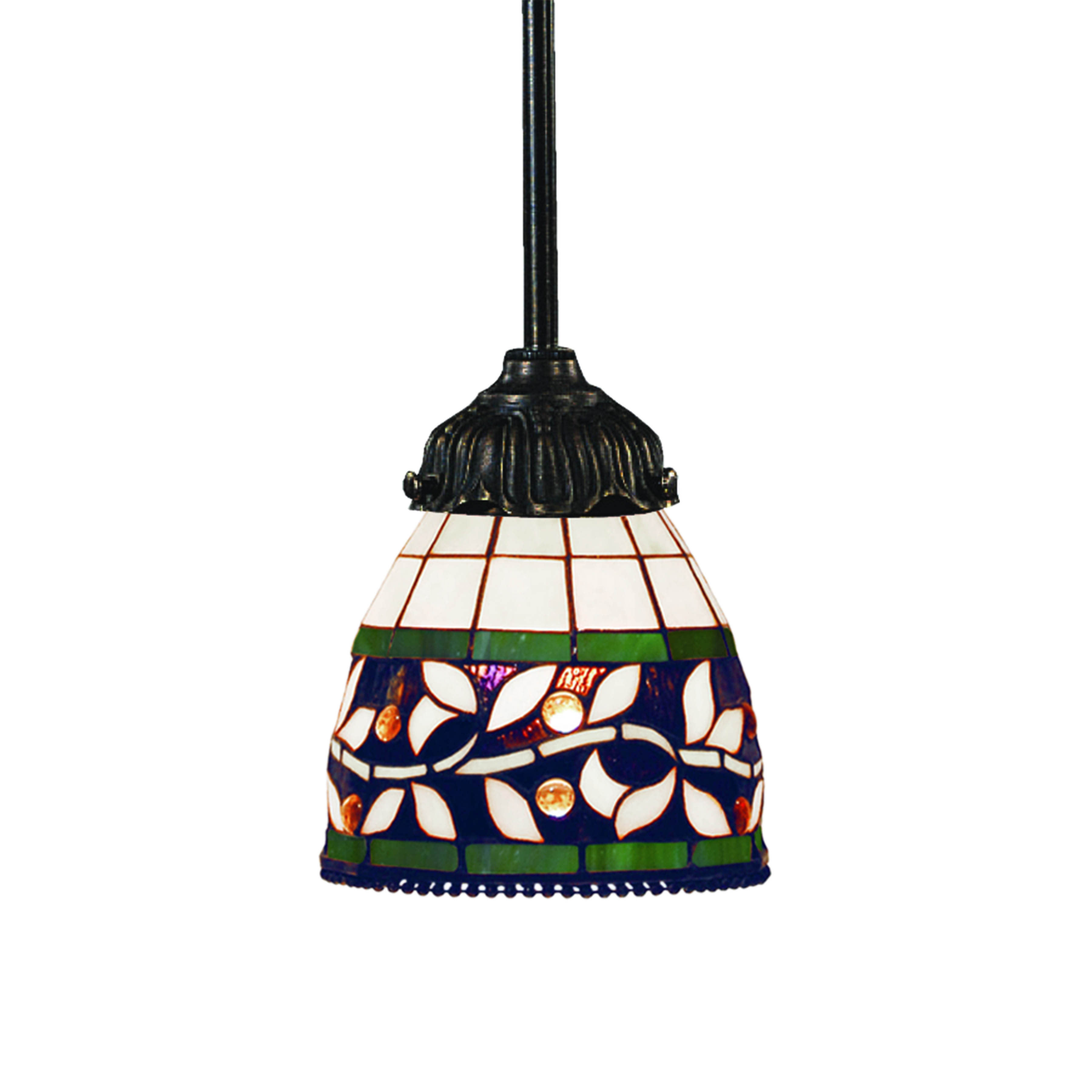 English Ivy 7'' Wide 1-Light Mini Pendant - Tiffany Bronze with Tiffany Style Glass