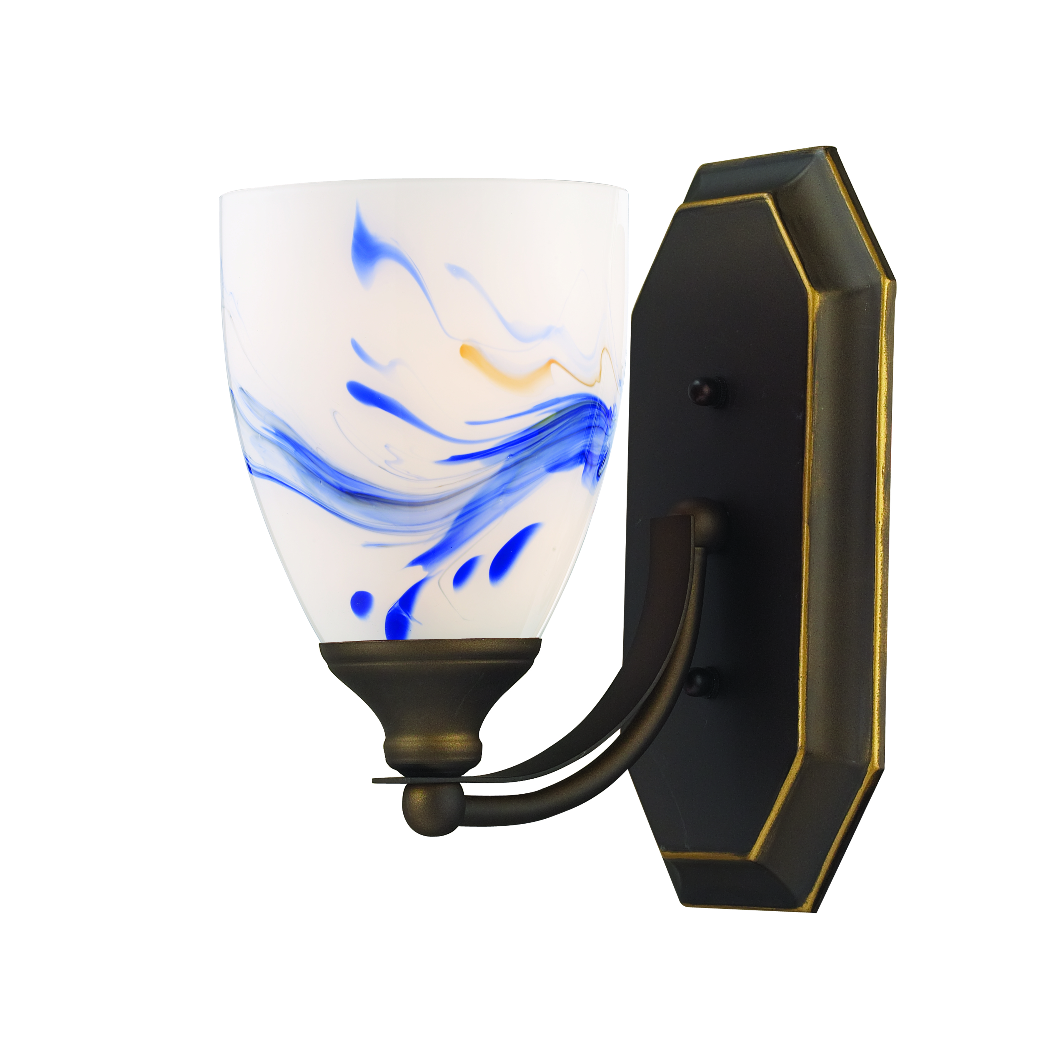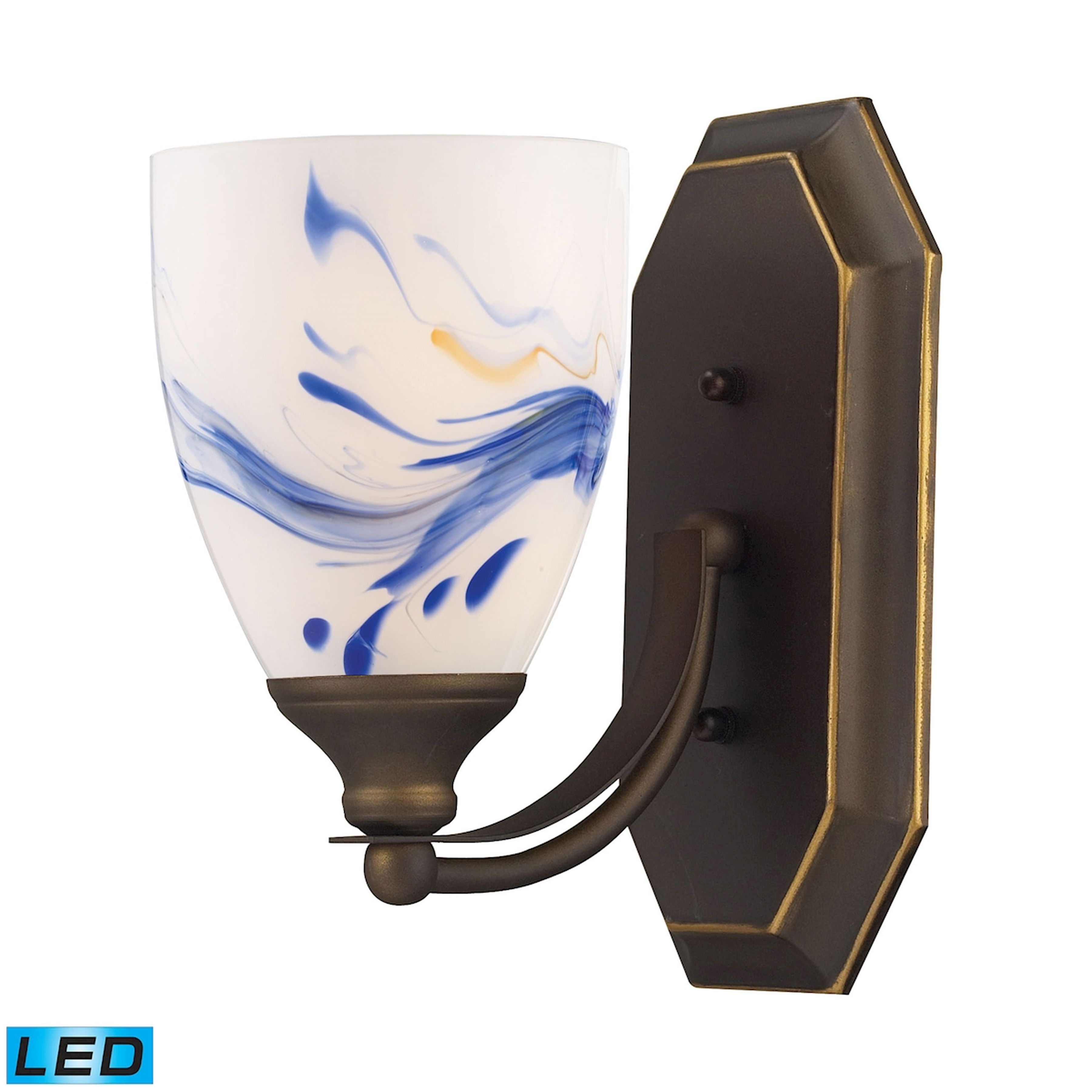 Mix-N-Match Vanity 1-Light Wall Lamp in Aged Bronze with Starburst Blue Glass - Includes LED Bulb