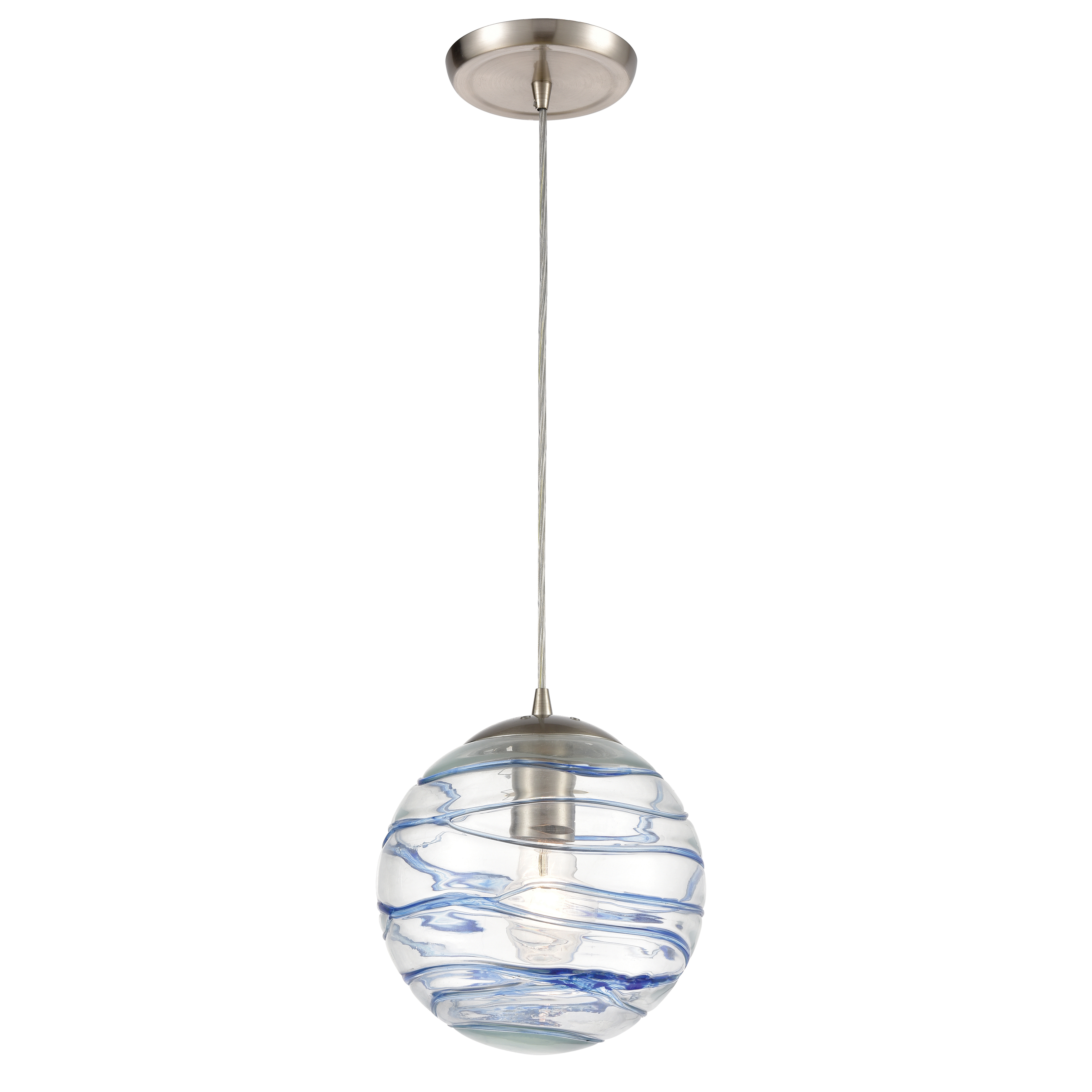Vines 8'' Wide 1-Light Pendant - Satin Nickel with Blue Glass