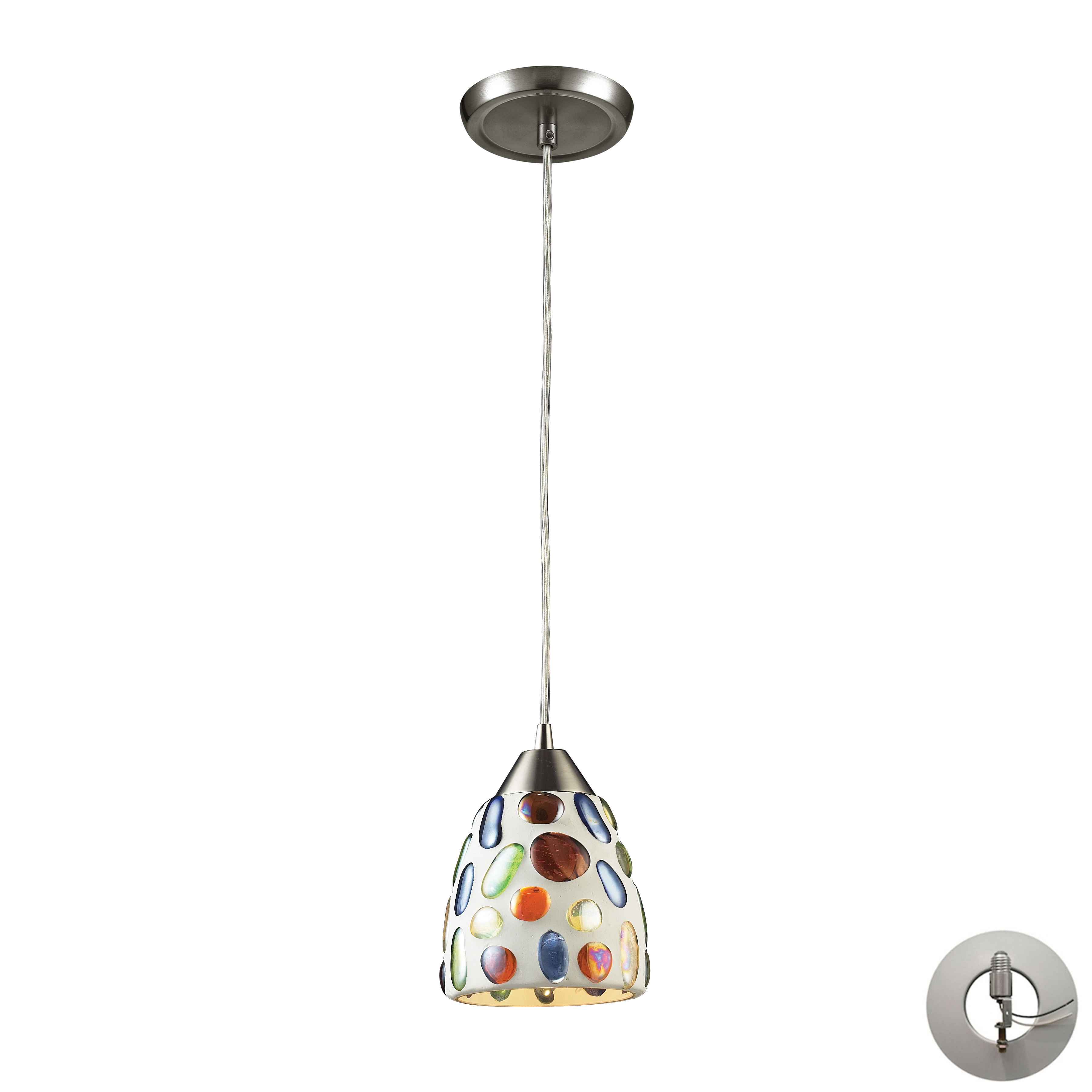 Fusion 5'' Wide 1-Light Mini Pendant - Satin Nickel with Multicolor Mosaic - Includes Adapter Kit