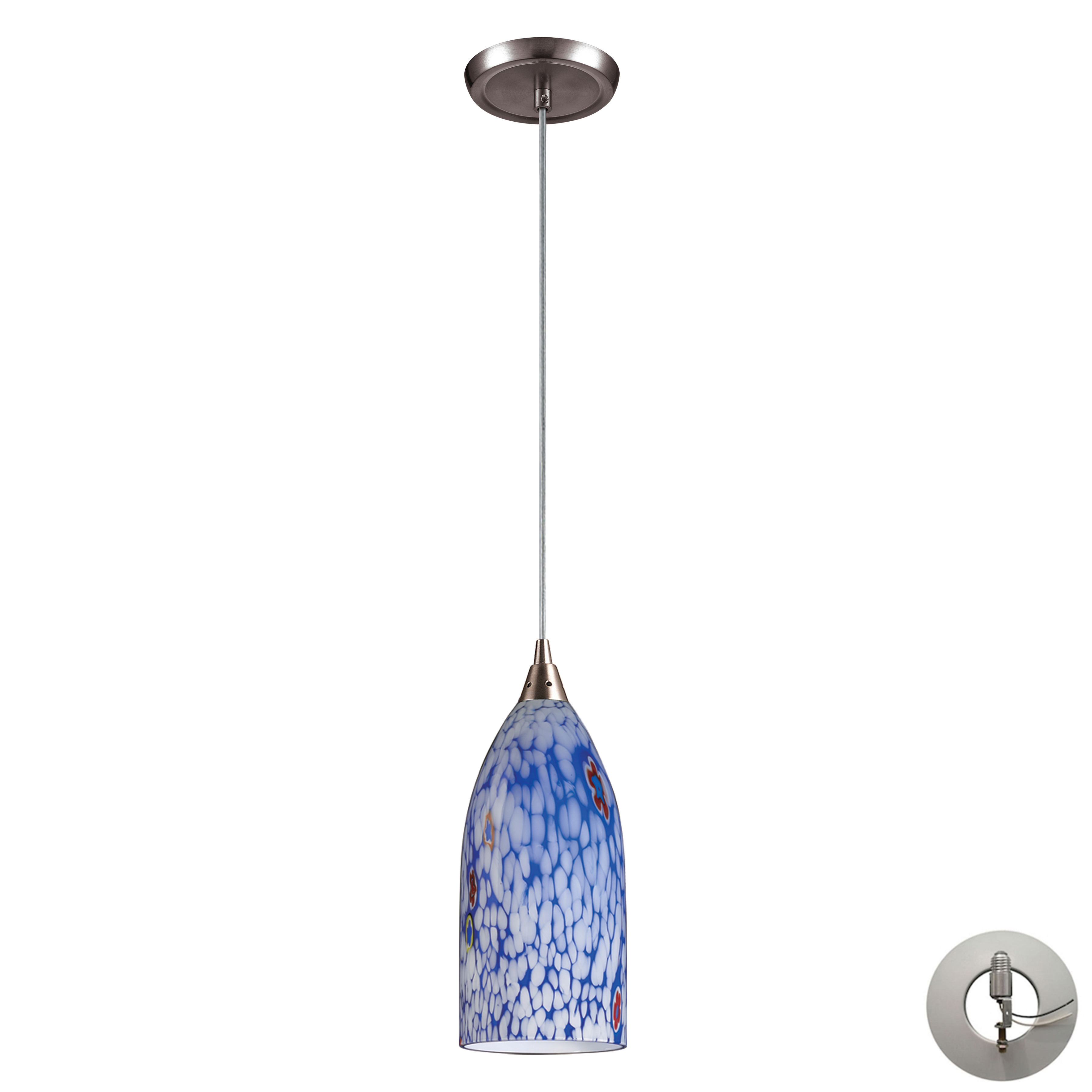Verona 5'' Wide 1-Light Pendant - Satin Nickel with Starburst Blue Glass - Includes Adapter Kit