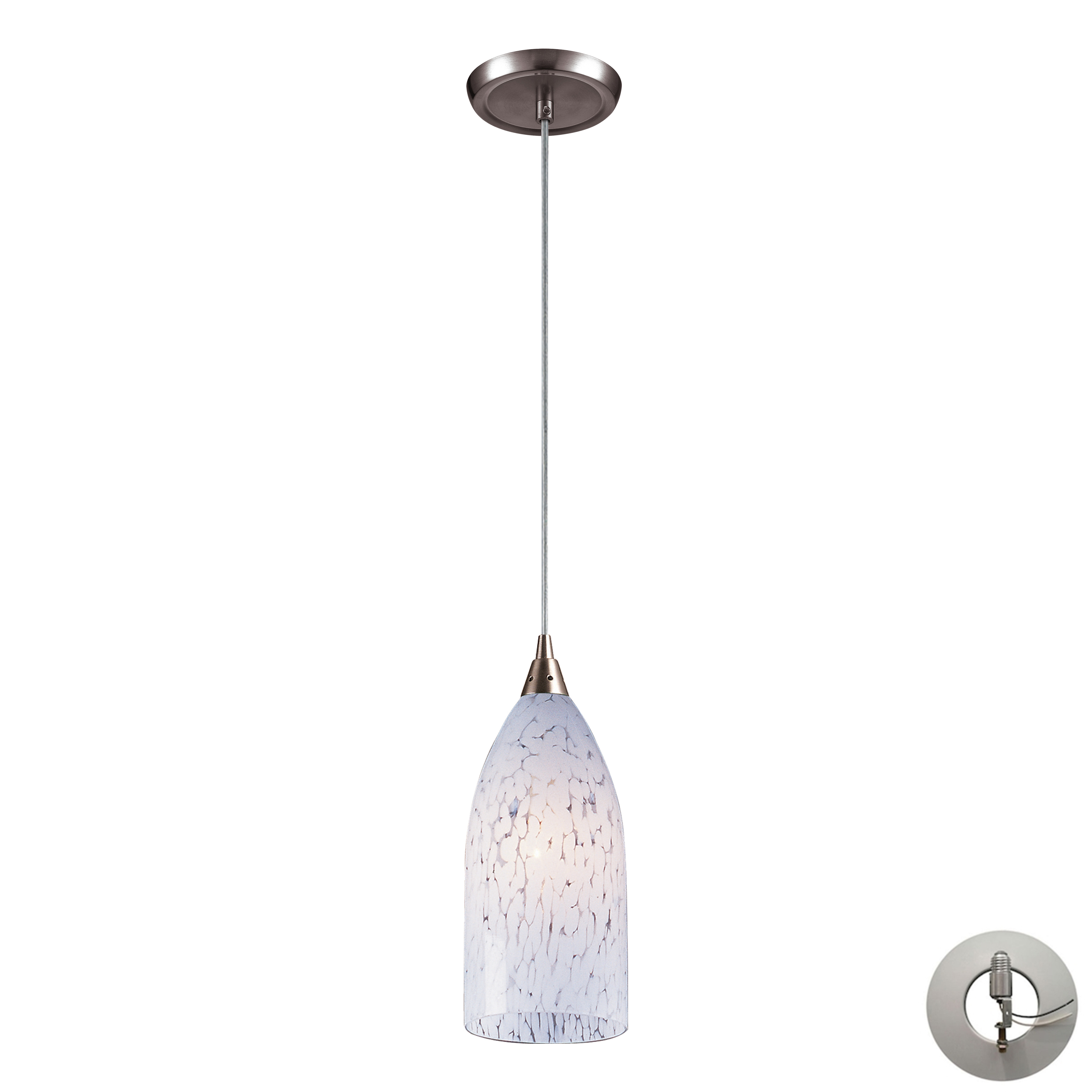 Verona 5'' Wide 1-Light Pendant - Satin Nickel with Snow White Glass - Includes Adapter Kit