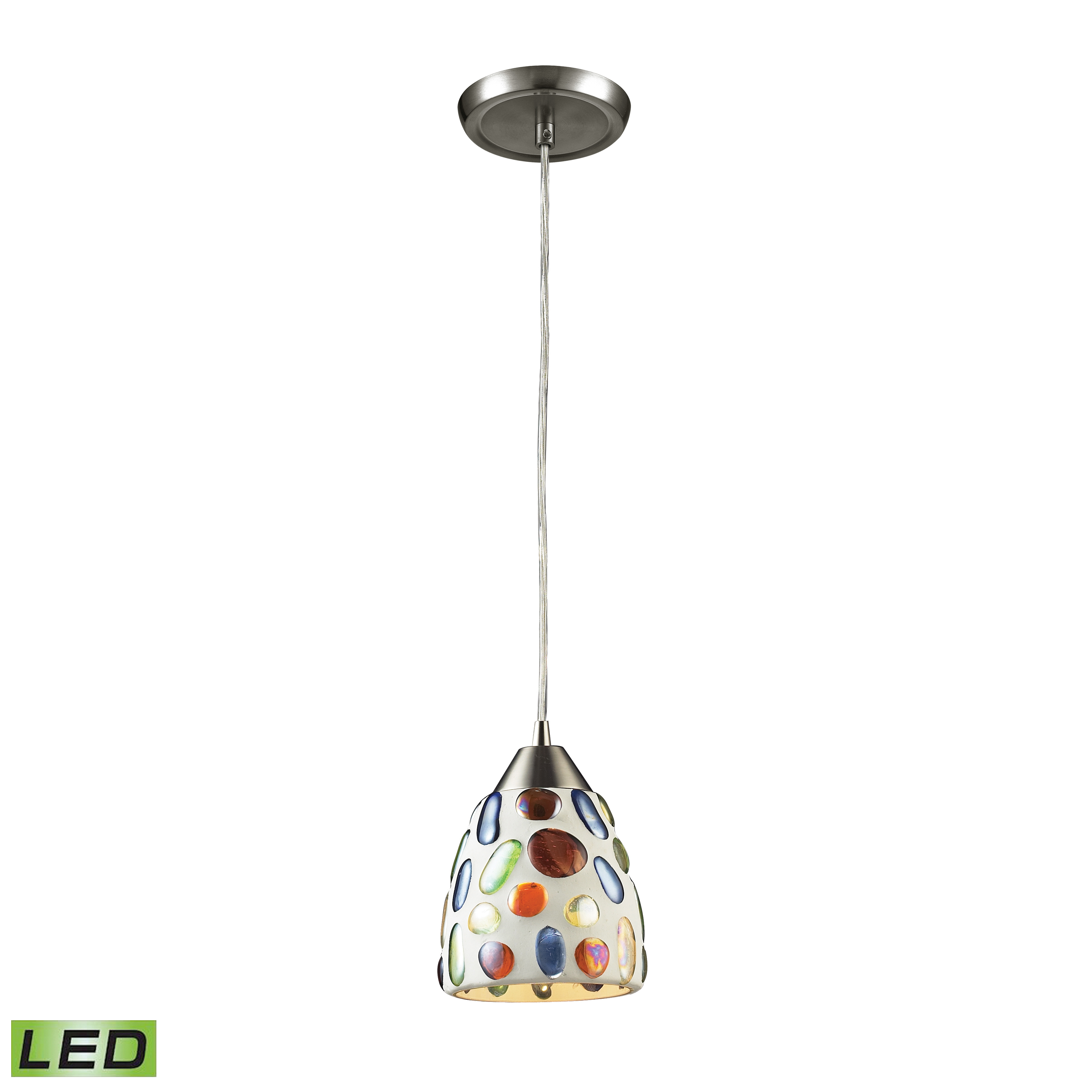 Arco Baleno 5'' Wide 1-Light Pendant - Satin Nickel with Multicolor Glass - Includes LED Bulb