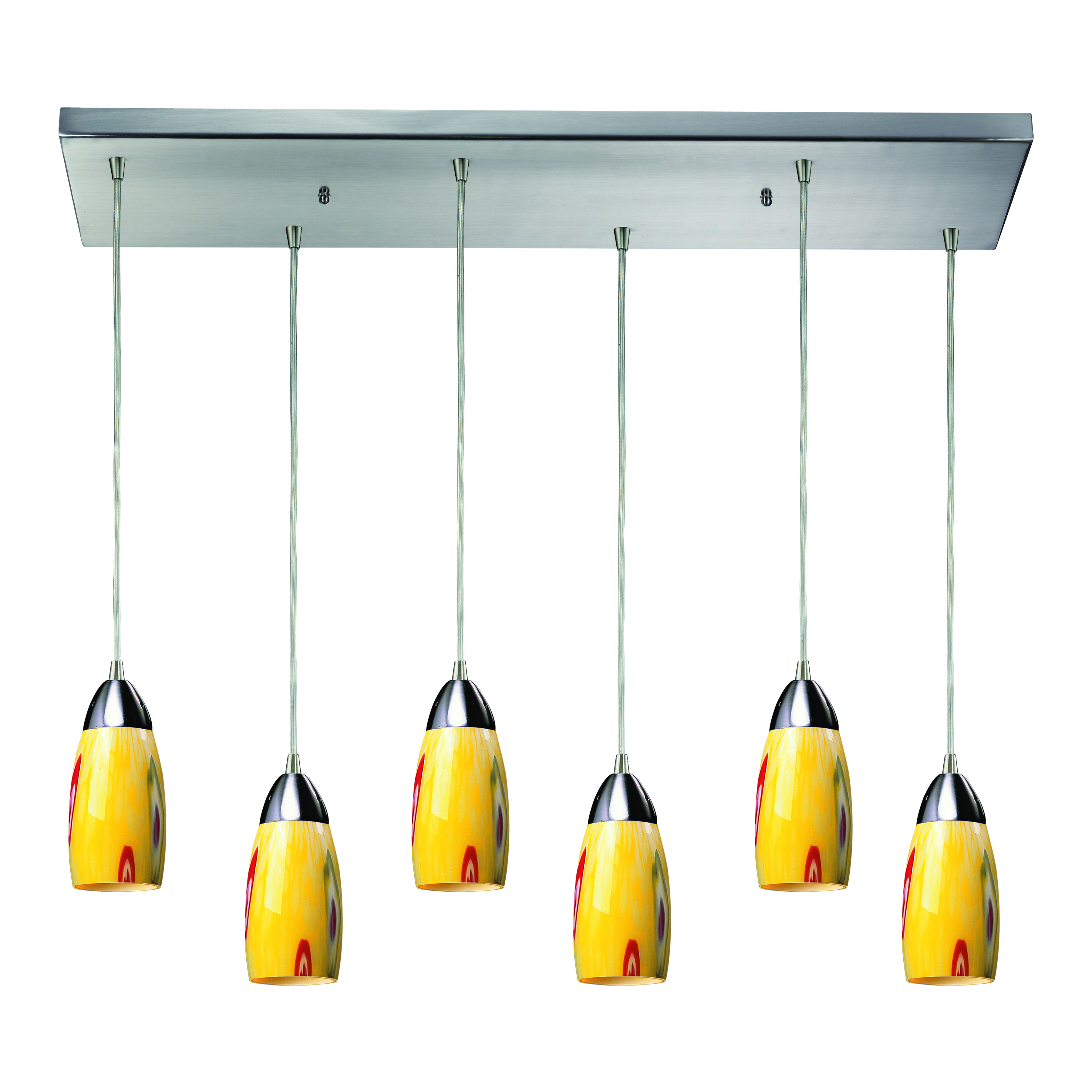 Milan 30'' Wide 6-Light Pendant - Satin Nickel with Yellow Blaze Glass