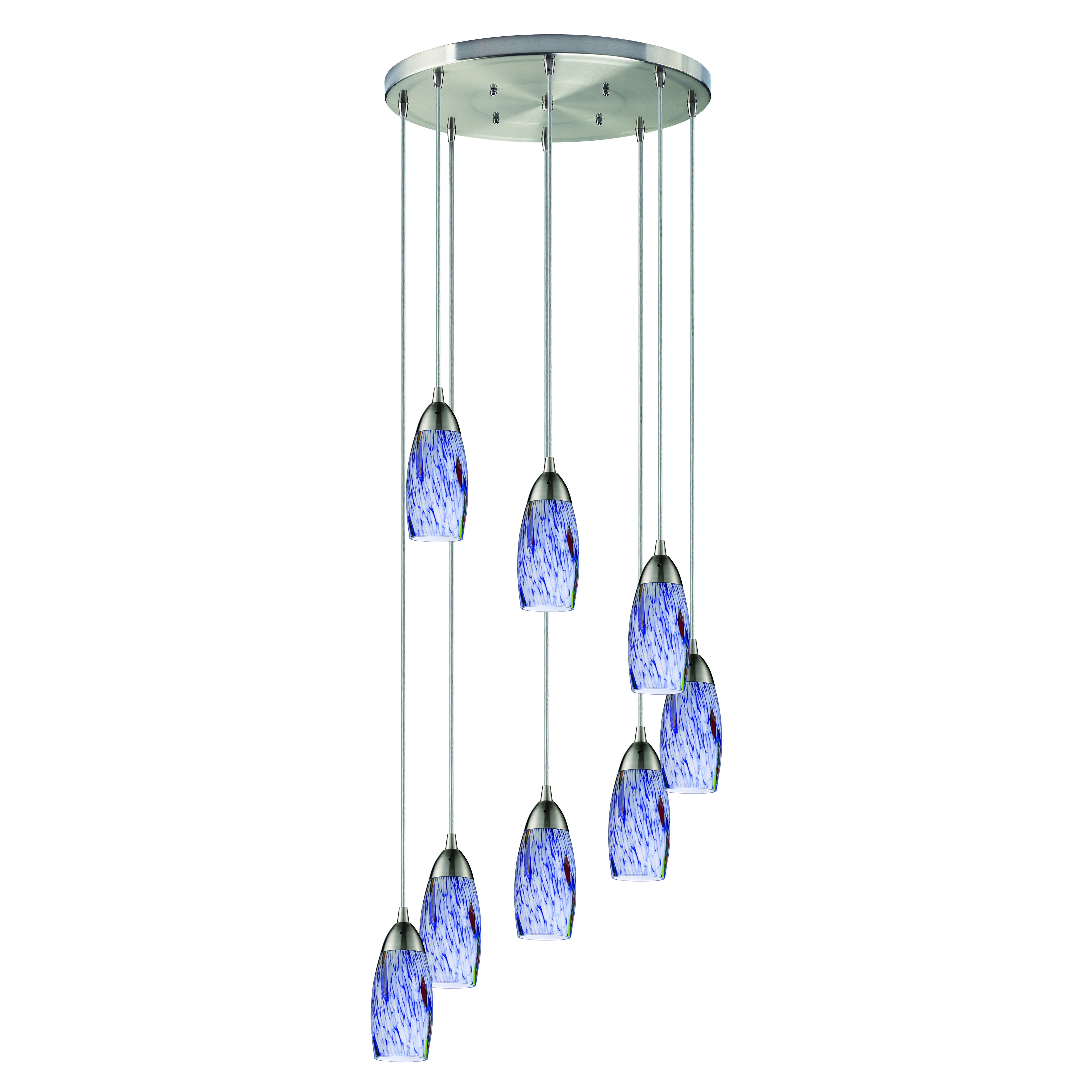 Milan 18'' Wide 8-Light Pendant - Satin Nickel with Starburst Blue Glass