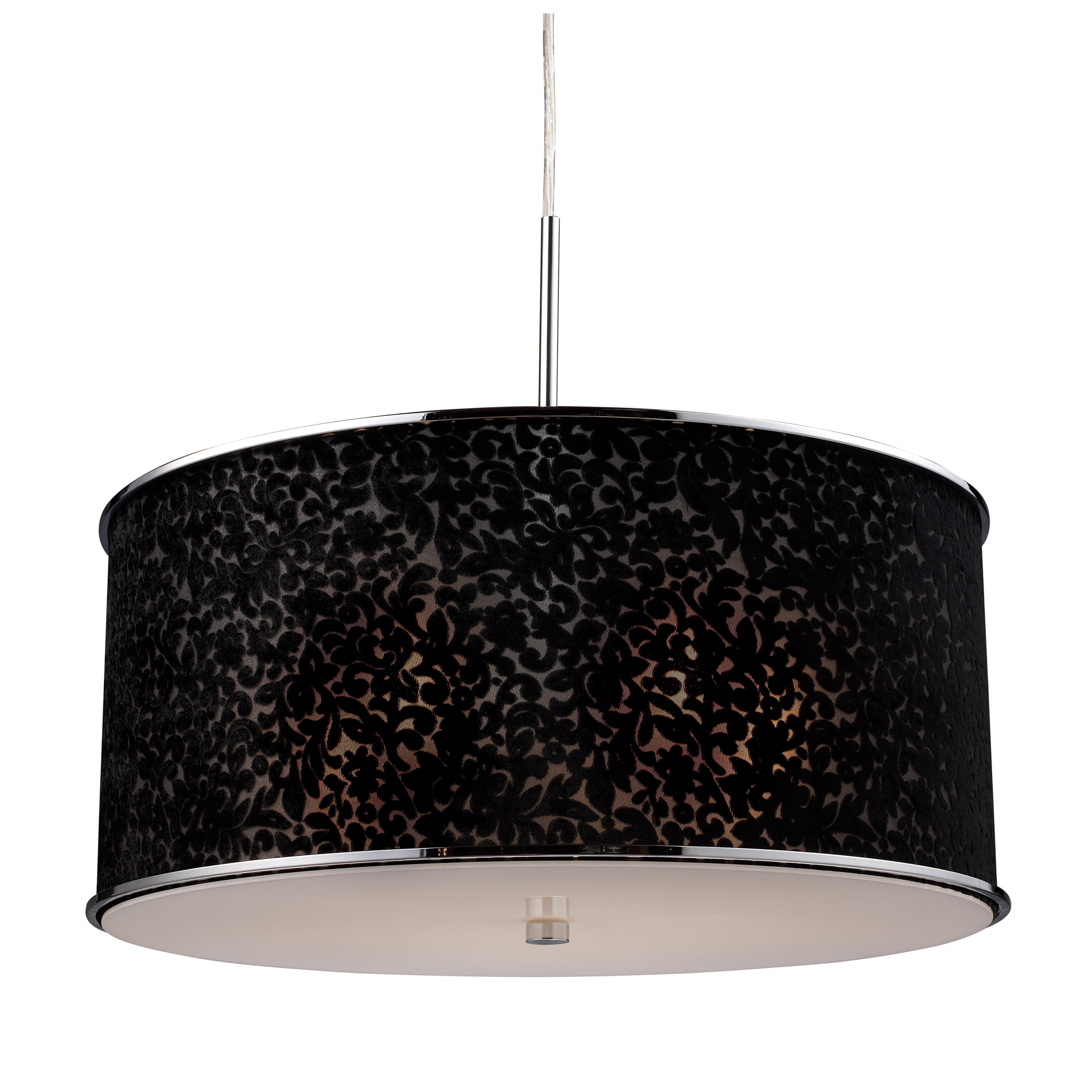 Fabrique 10'' Wide 3-Light Drum Pendant - Polished Chrome with Pinstripe Black Shades