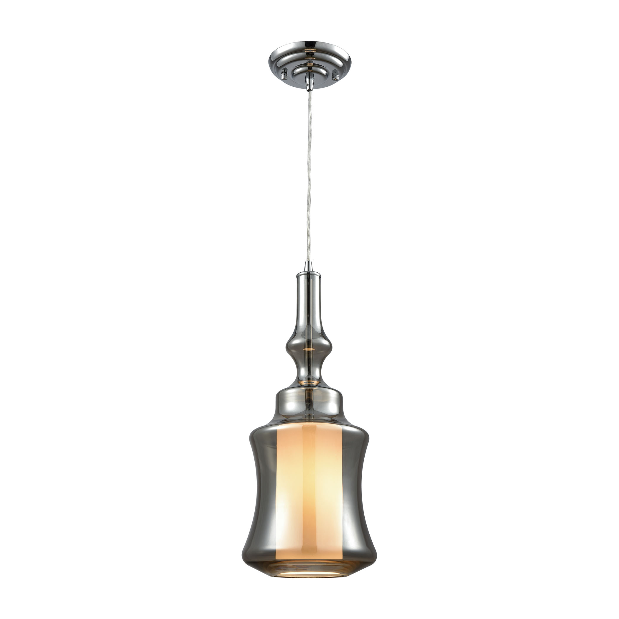 Alora 8'' Wide 1-Light Mini Pendant - Chrome with Smoke-Plated and Opal White Glass - Includes Adapter Kit
