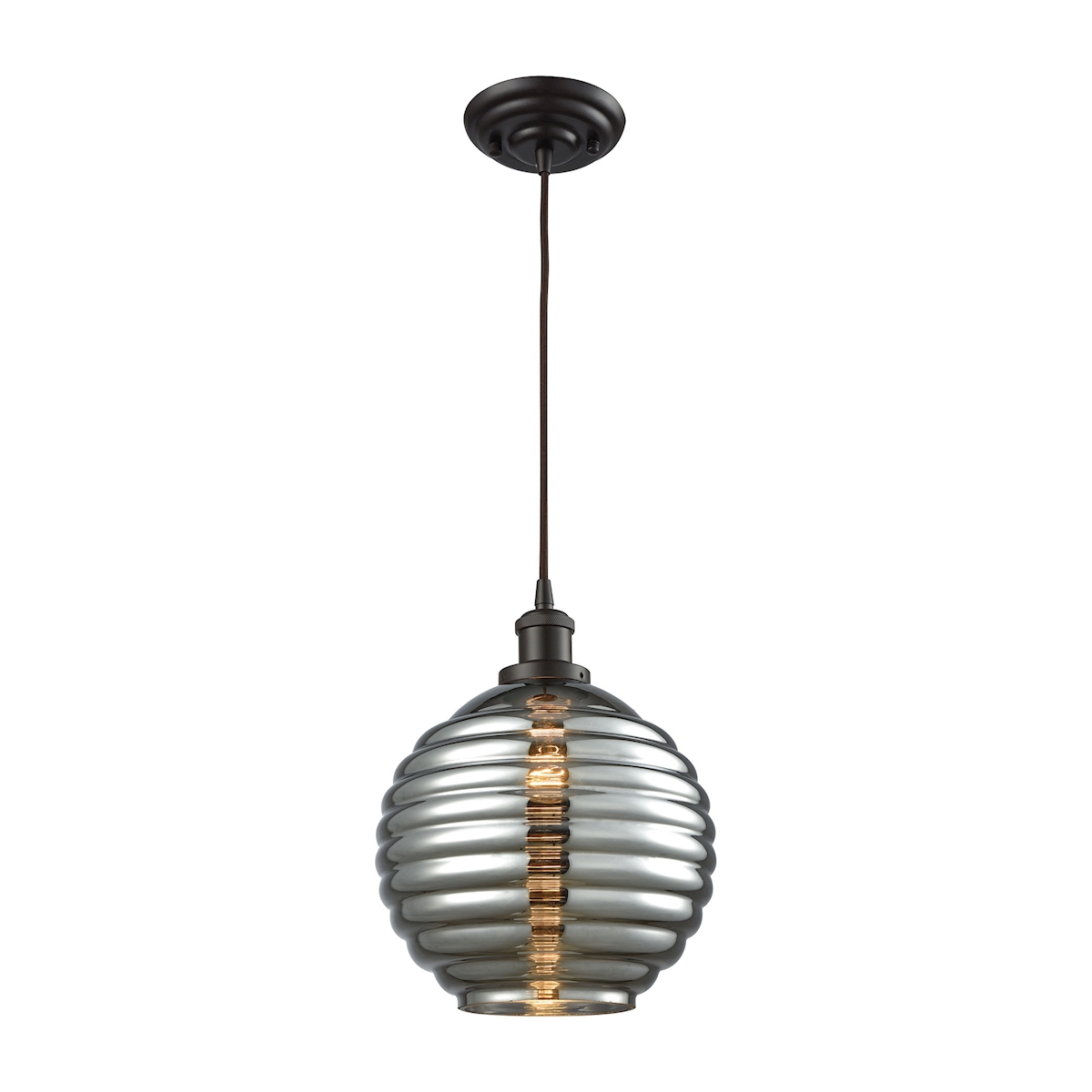 Ridley 10'' Wide 1-Light Mini Pendant - Oil Rubbed Bronze with Smoke Plated Beehive Glass
