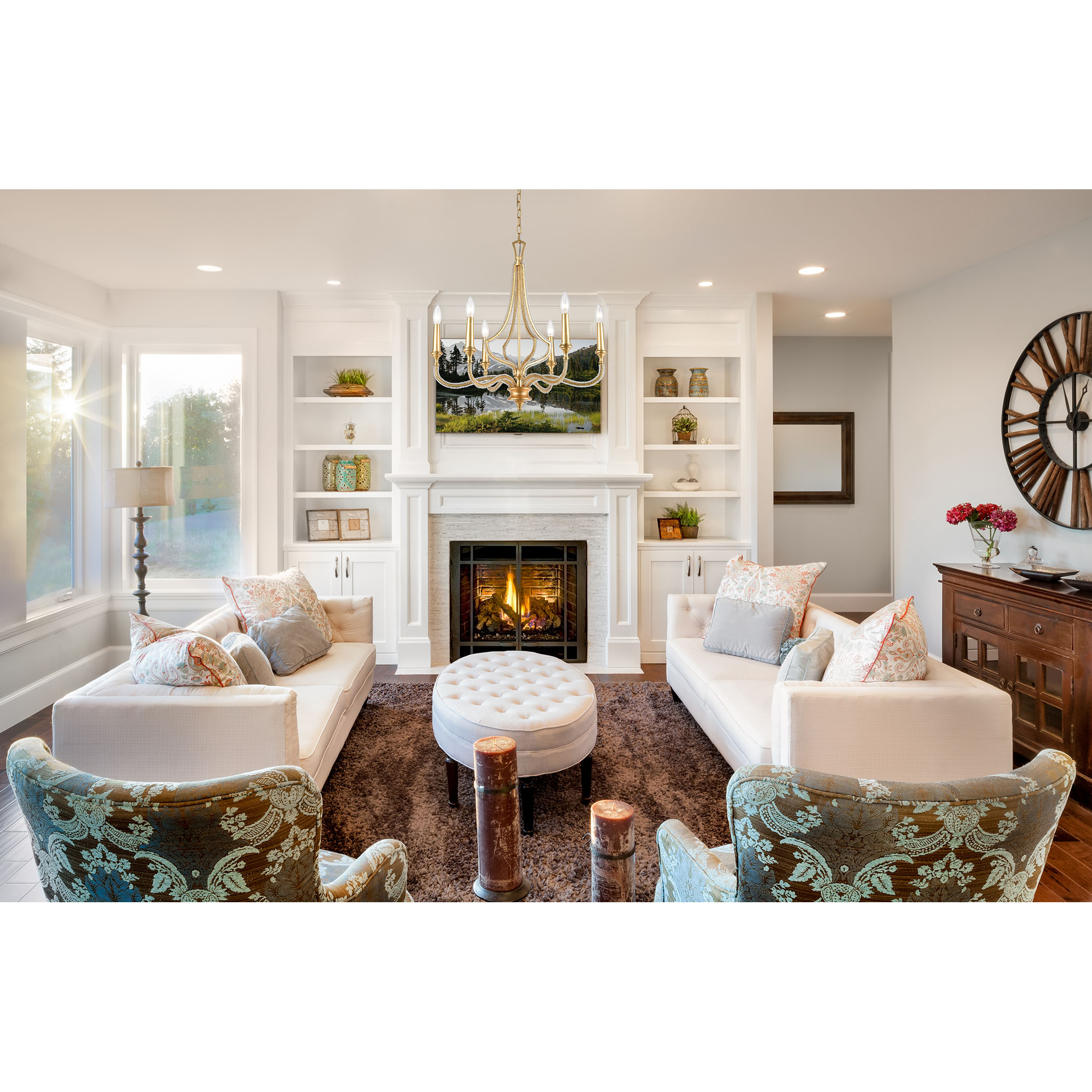 Drawing from the French Chateaux style, the La Rochelle collection has a graceful design of delicate curves and generous proportion. The glass bead-lined frame, tapered and turned candles, and a Parisian Gold Leaf finish accentuate this collection’s timeless beauty.