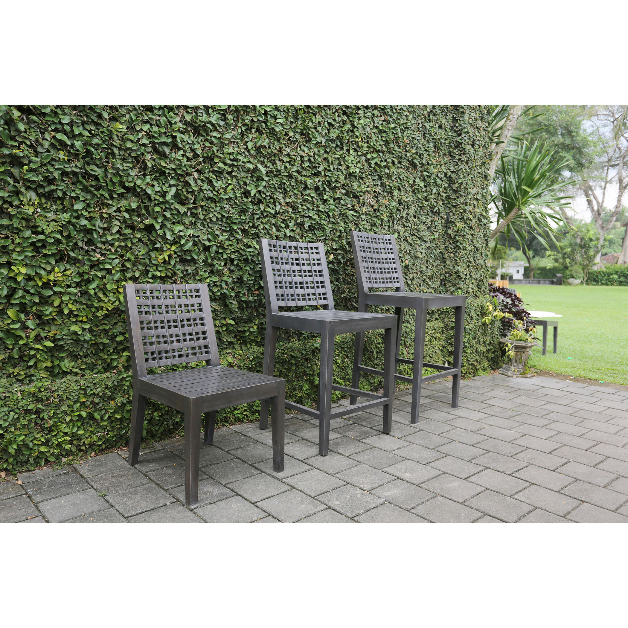 Antique Smoke finish on carved teak waffle pattern bar stool.
