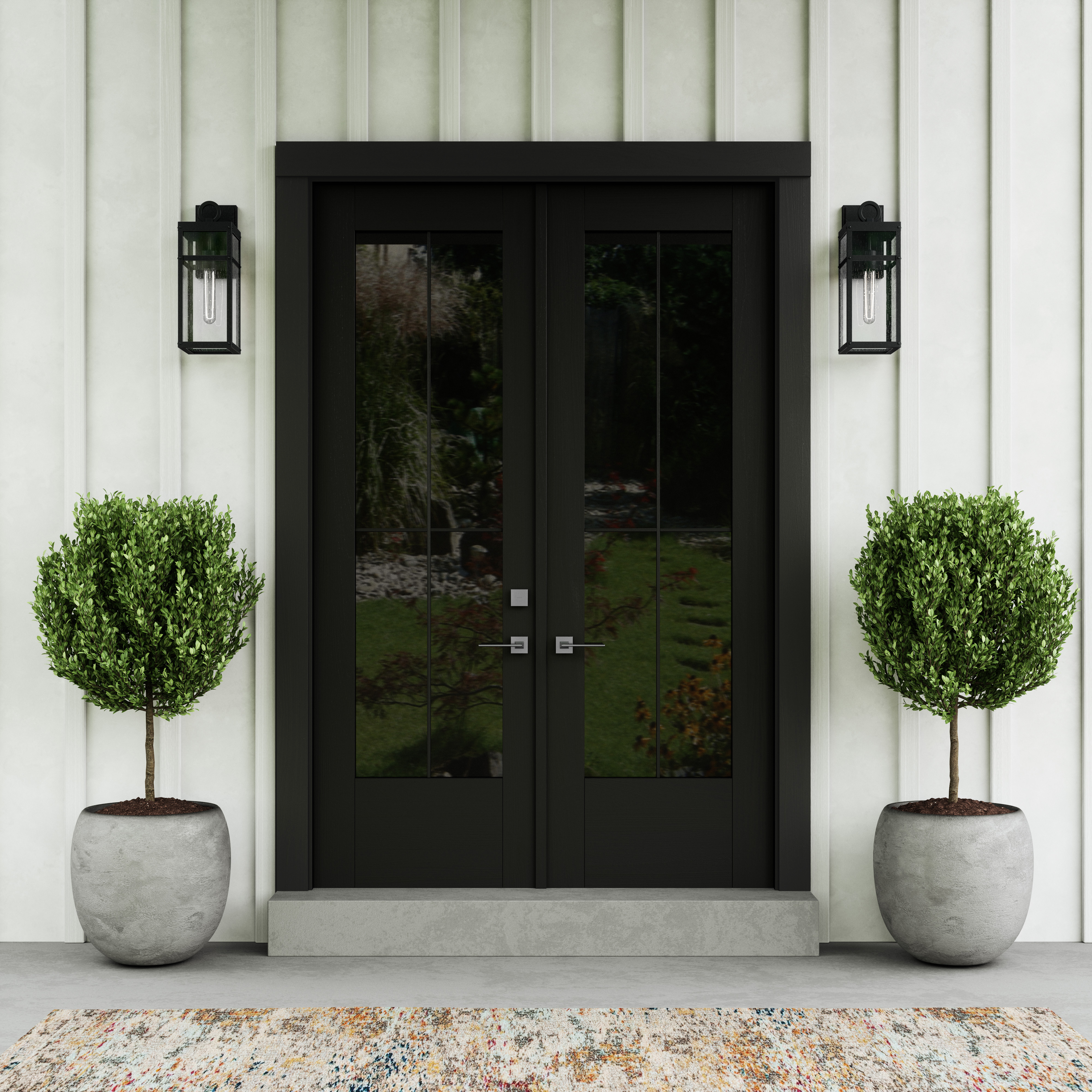 The Dalton outdoor collection showcases a tall linear style with aluminum construction and a die-cast loop on top. Seeded glass panels and a textured black finish complete this architectural look.