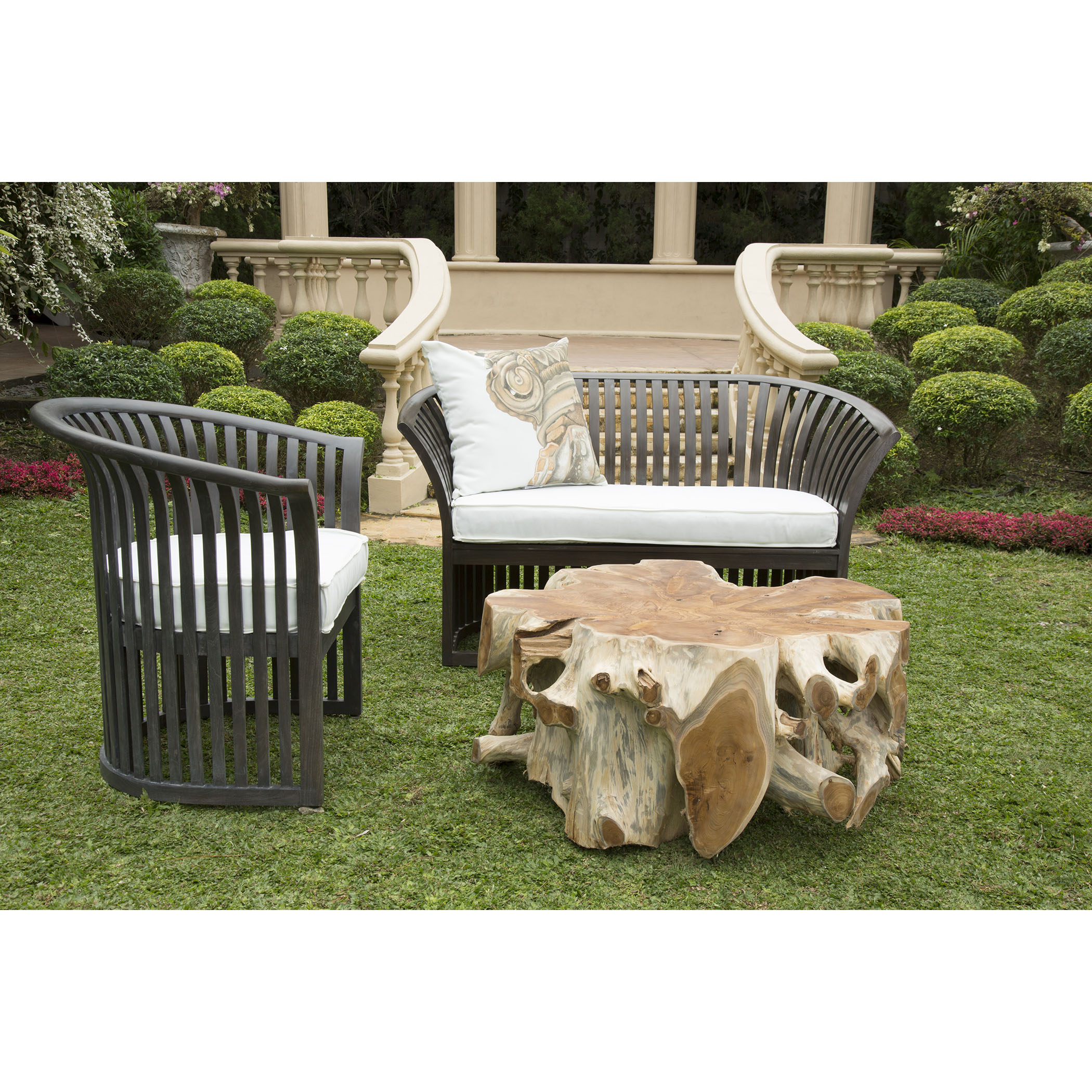 Natural finish on carved Teak root table.