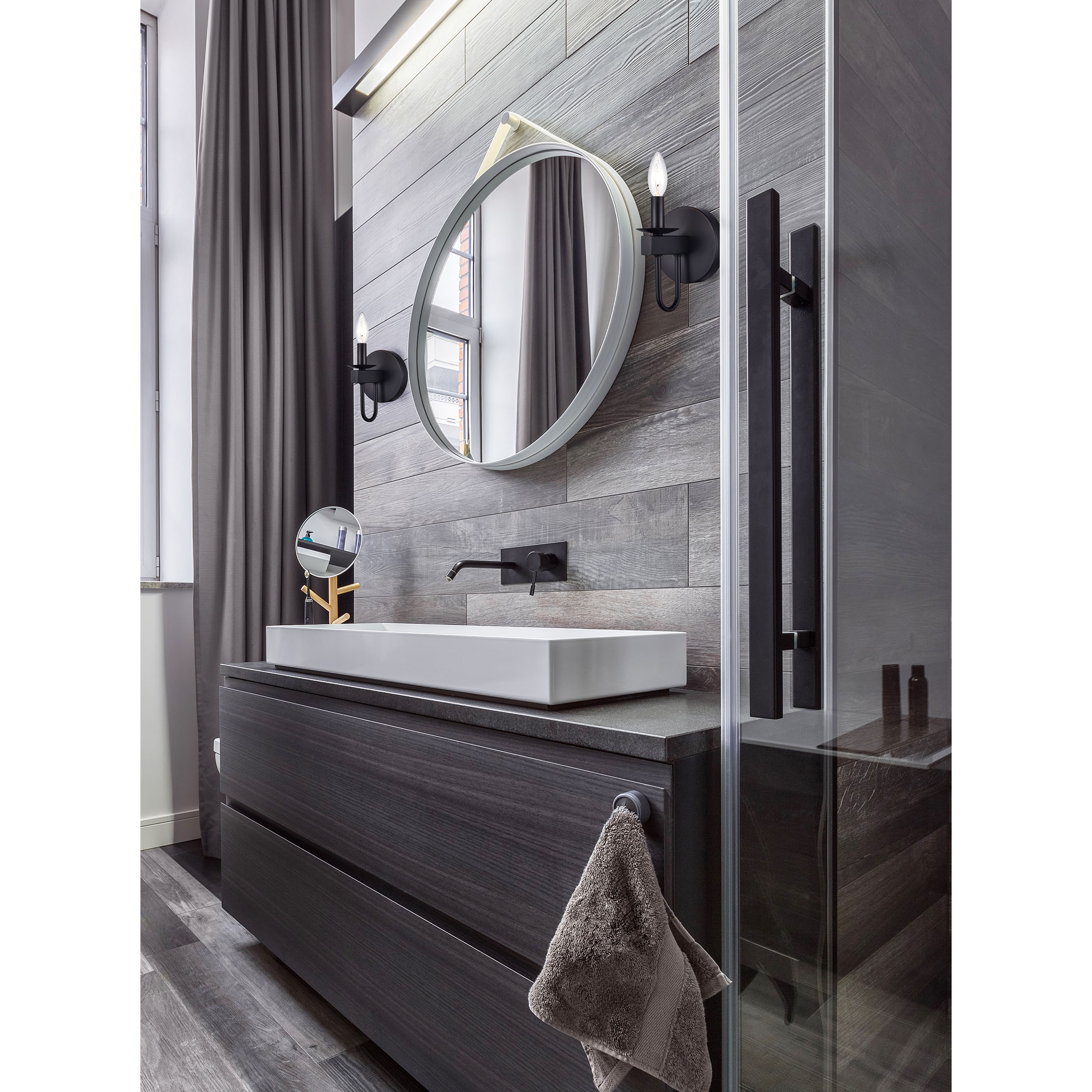 With a refined traditional style, the Williamson vanity light has curved arms that are encompassed by a flat metal ring. The black finish allows easy coordination with any decor.