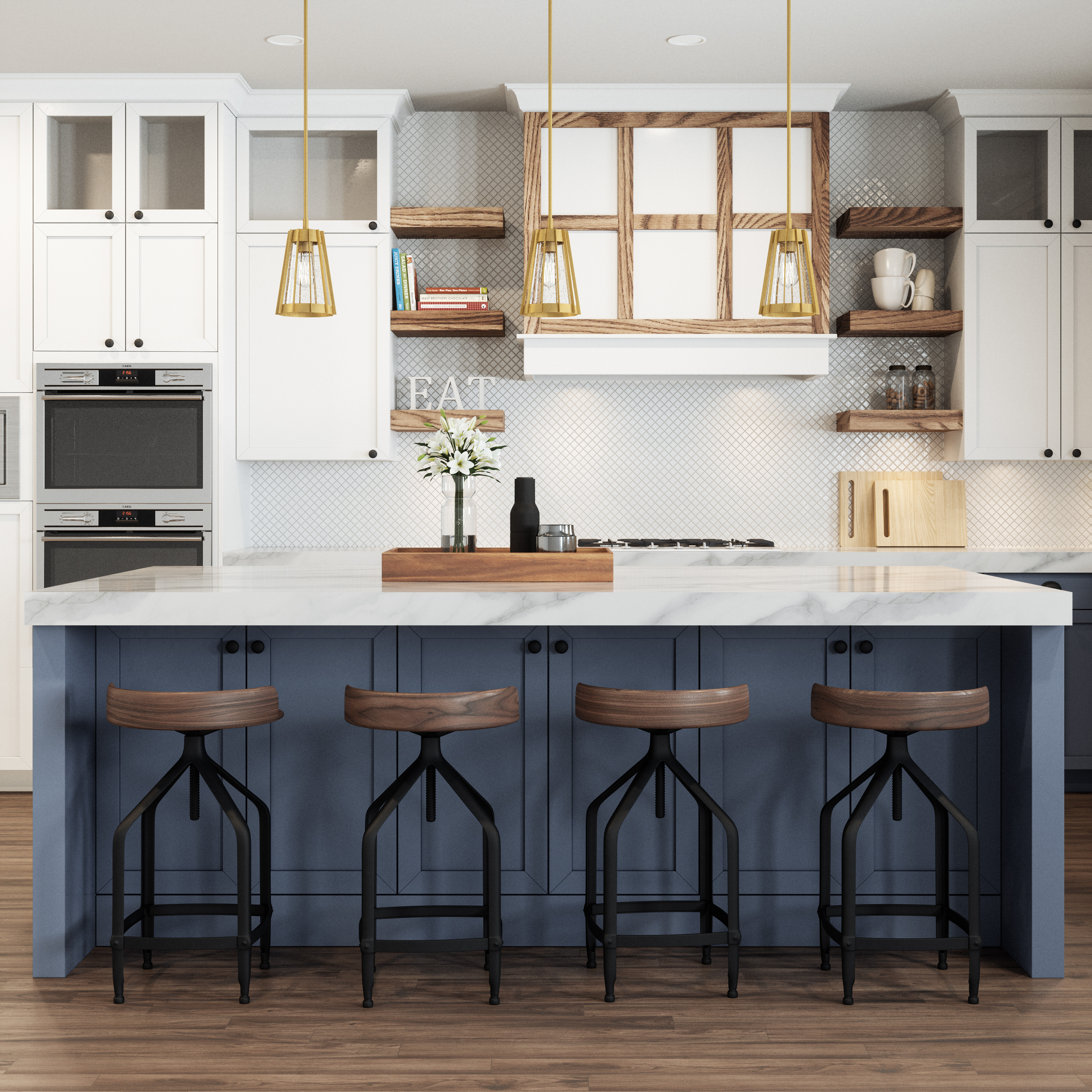 The Open Louvers collection features louver-like slats that surround angled seedy glass for an edgy, dimensional look.