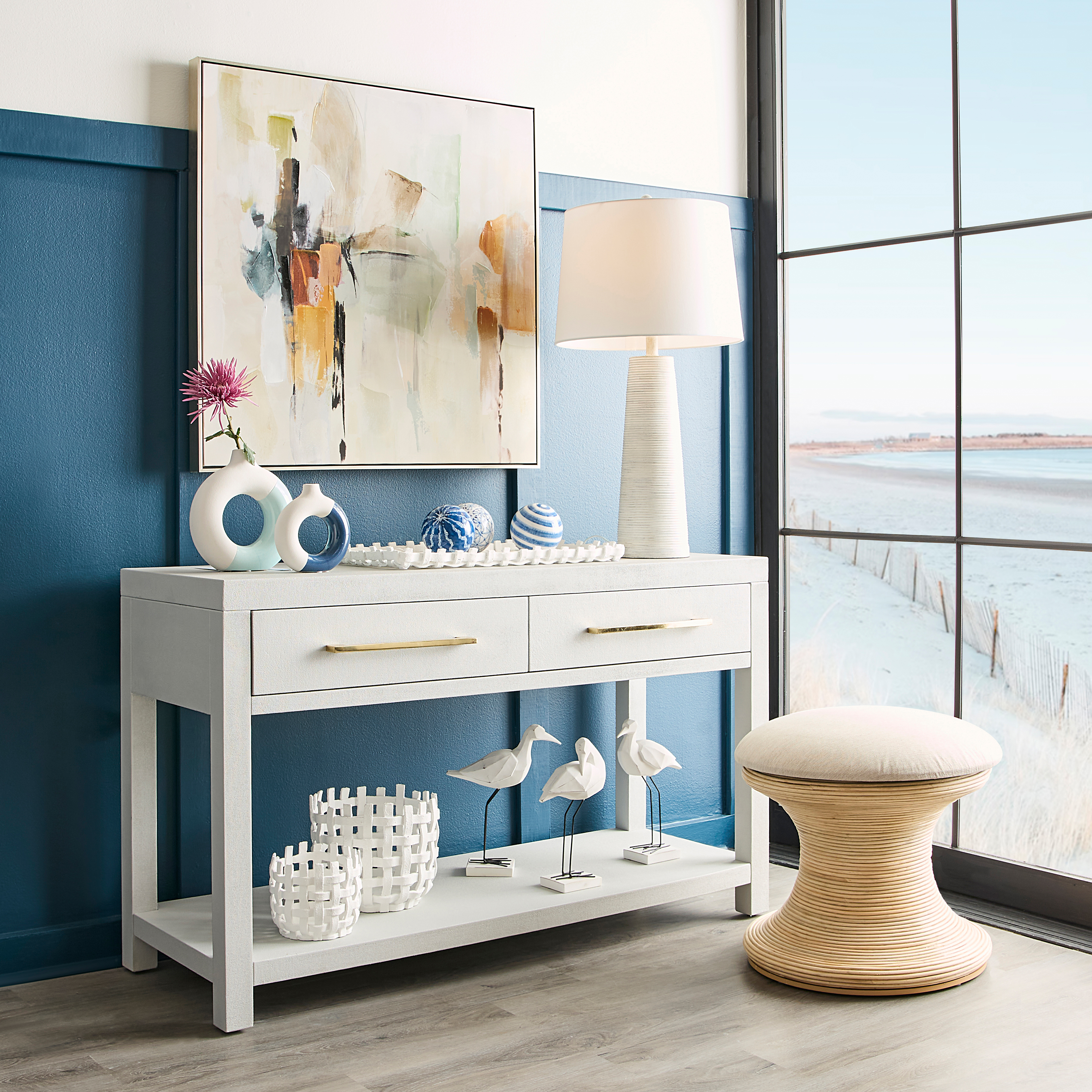 This assortment of ceramic orbs features hand-painted small scale patterns in blue and white which vary from piece to piece. These orbs can be displayed together in a decorative bowl or centerpiece.